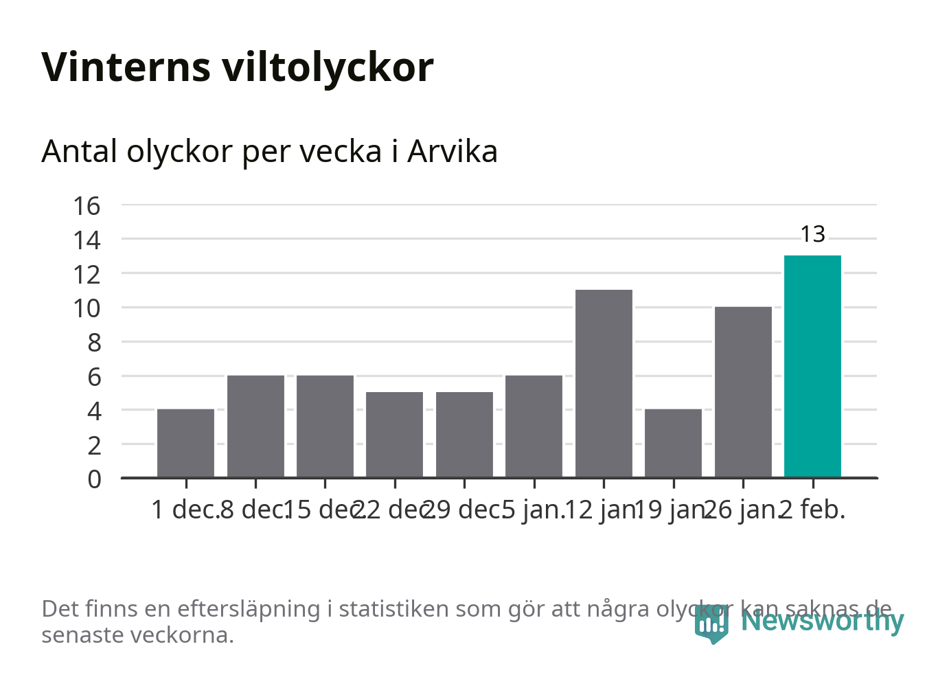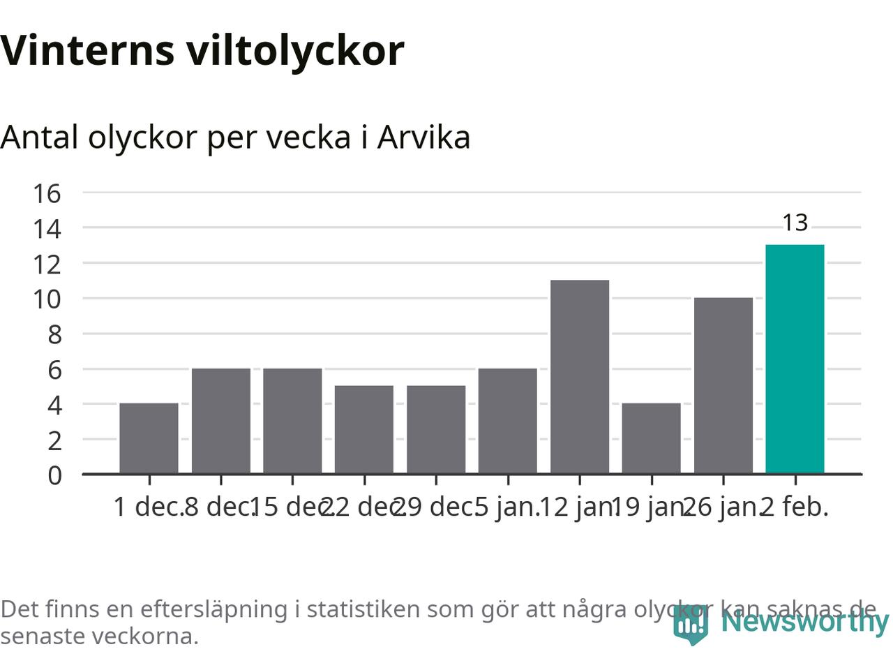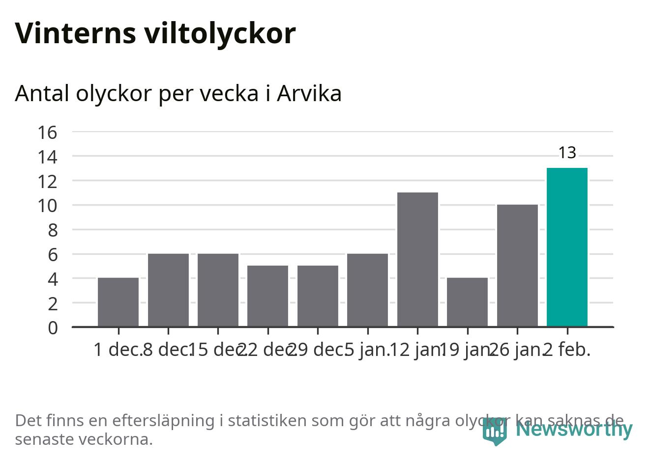 Under vecka 6 rapporterades 13 viltolyckor in i Arvika kommun. Det är det största antalet på en vecka den här vintern.
