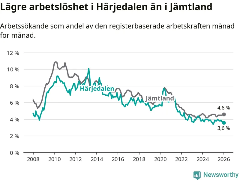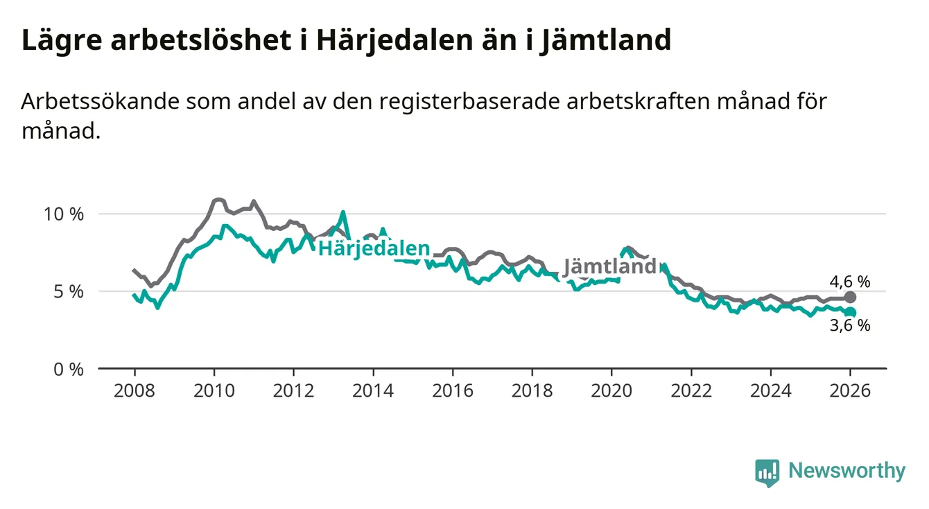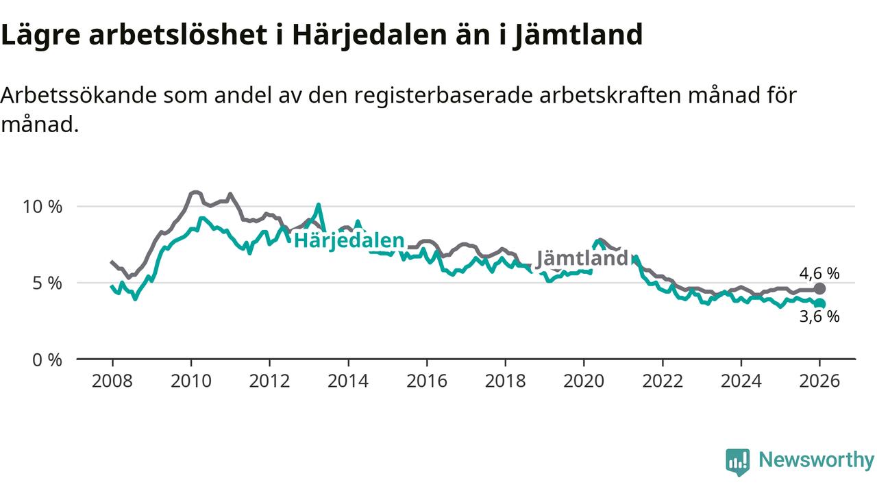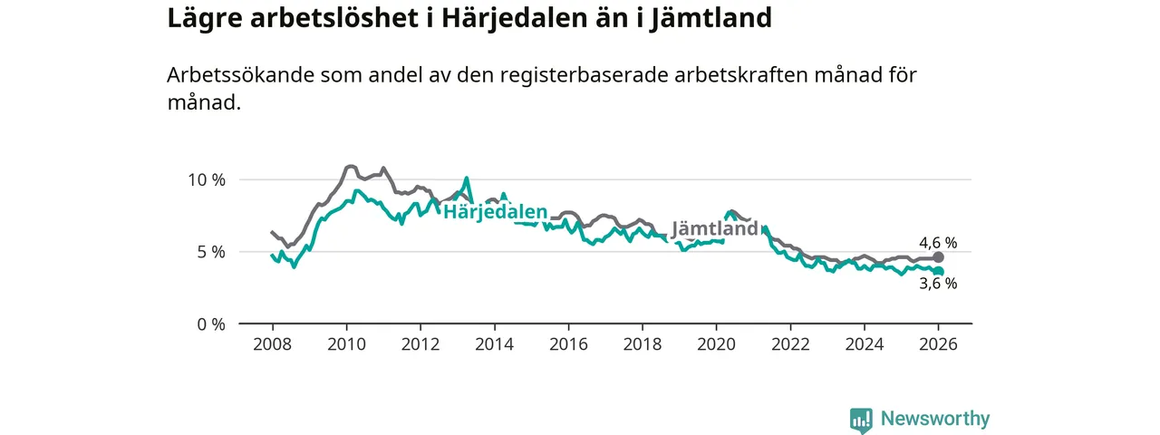 Även om arbetslösheten i Härjedalen alltså ökar,