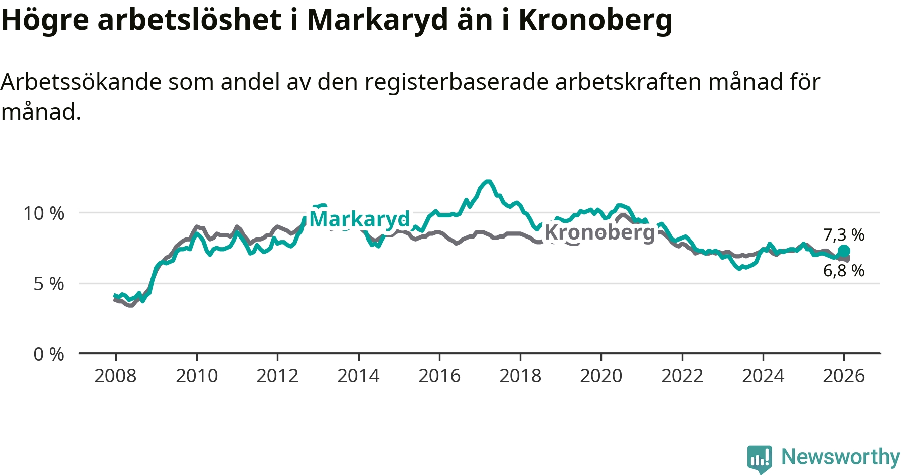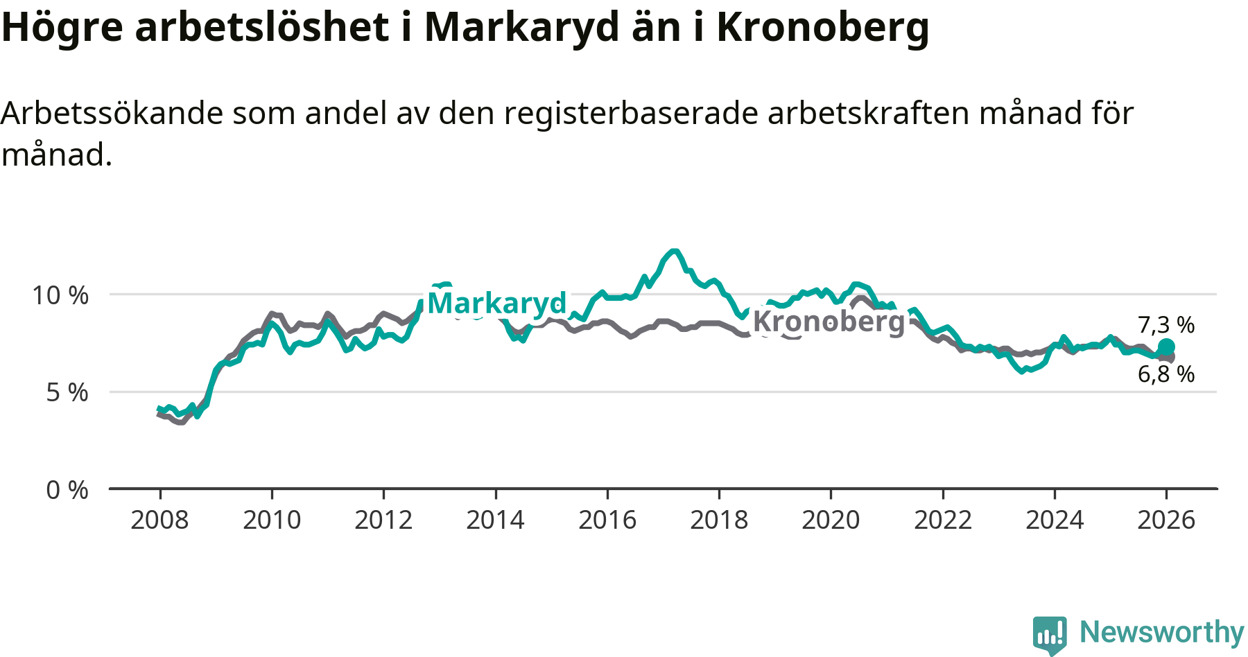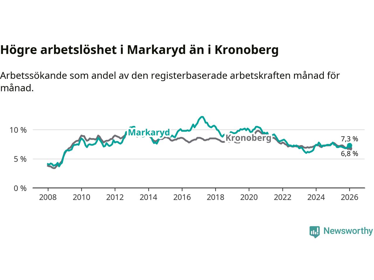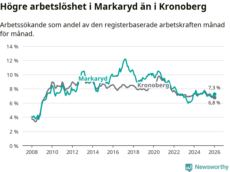 Graf: Arbetslöshet i Markaryds kommun och Kronobergs län