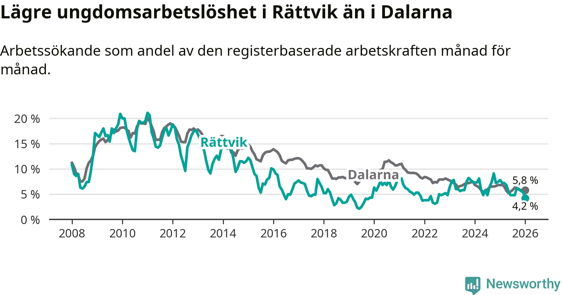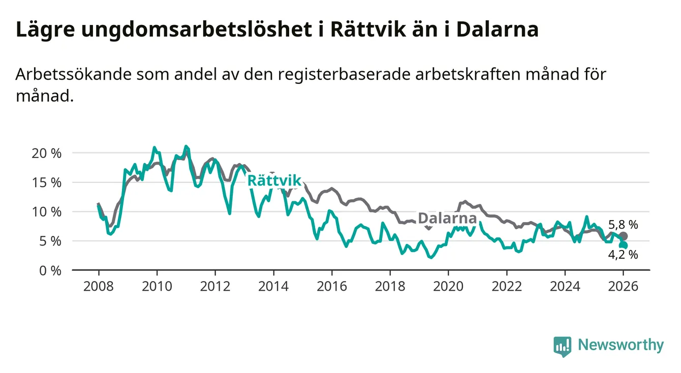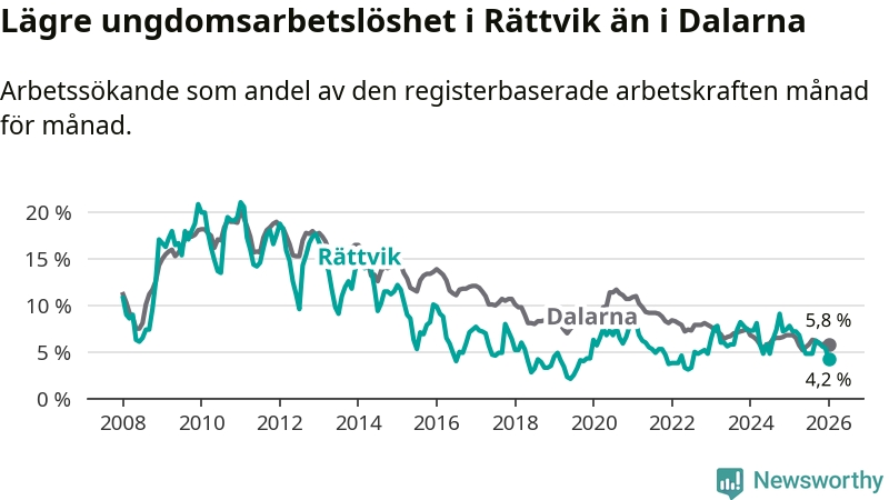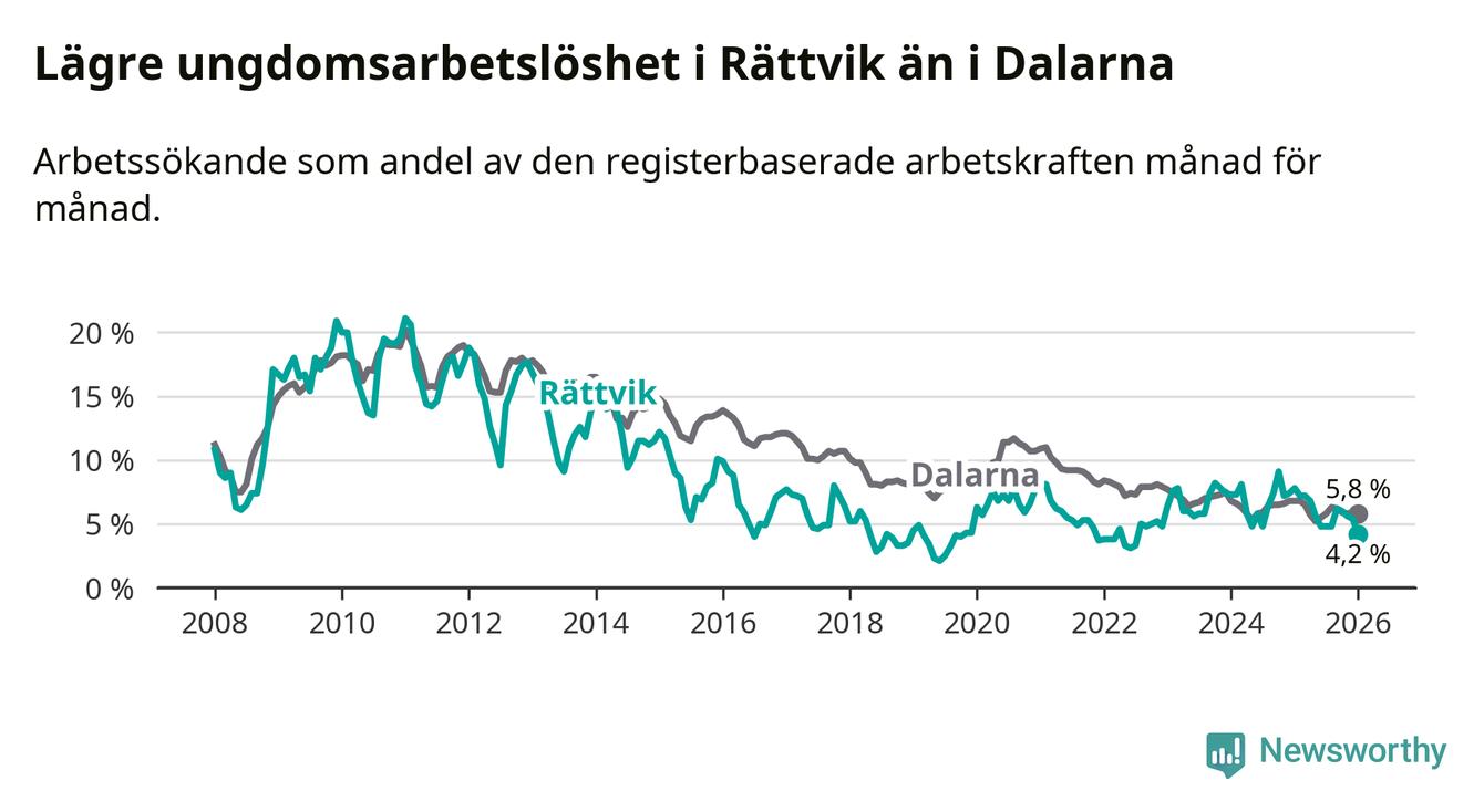 Rättviks kommun noterar i januari den lägsta ungdomsarbetslösheten sedan juli 2022.