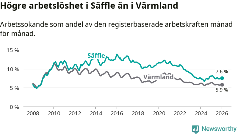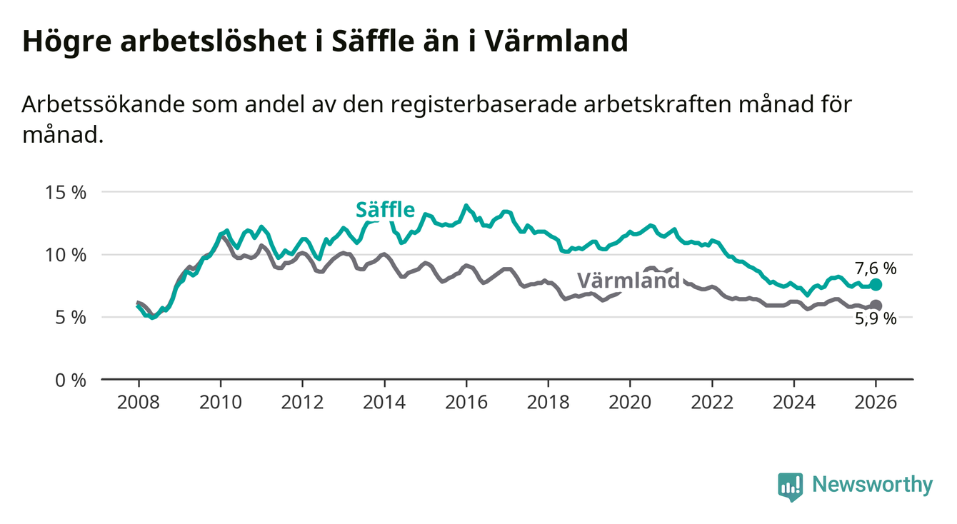 Graf: Arbetslöshet i Säffle kommun och Värmlands län