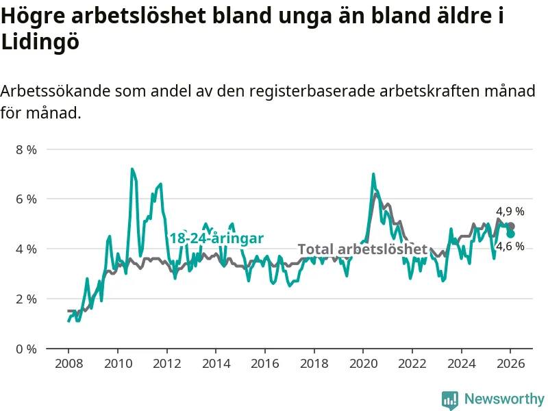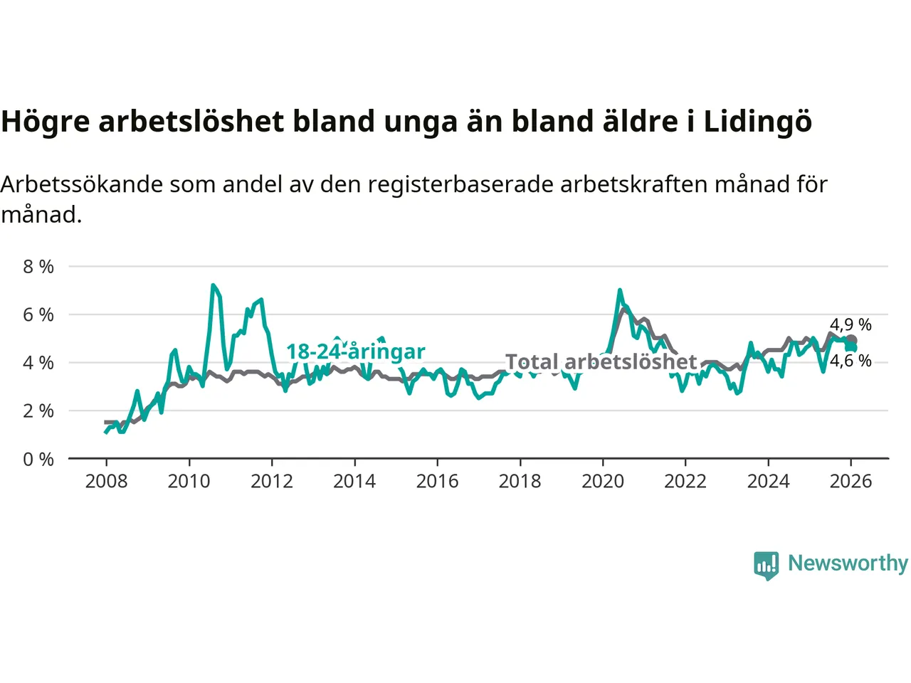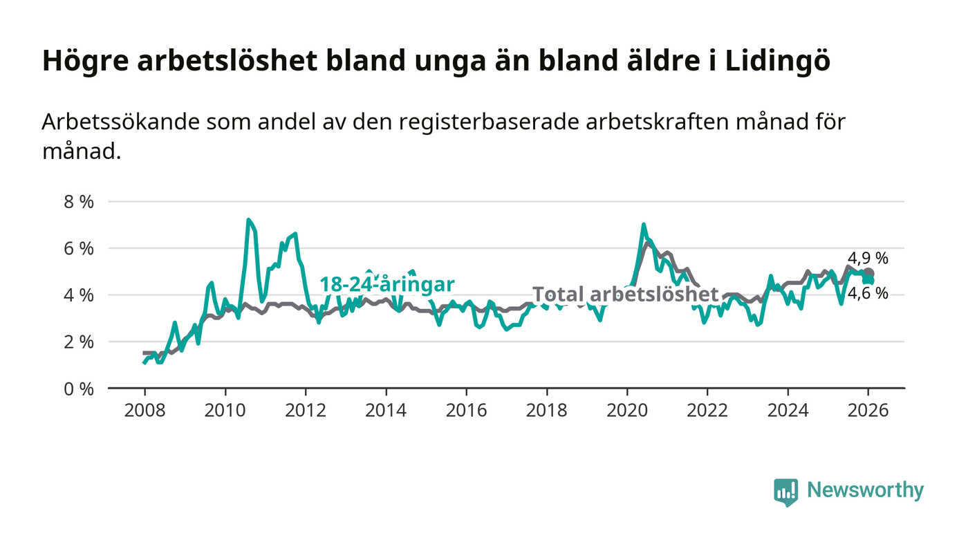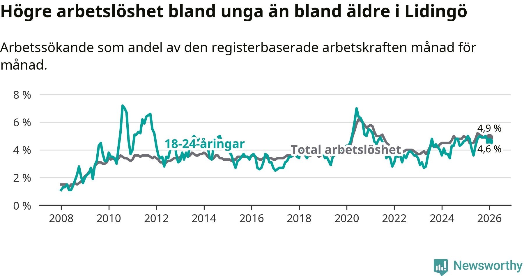 Graf: Arbetslöshet bland unga i Lidingö kommun och Stockholms län