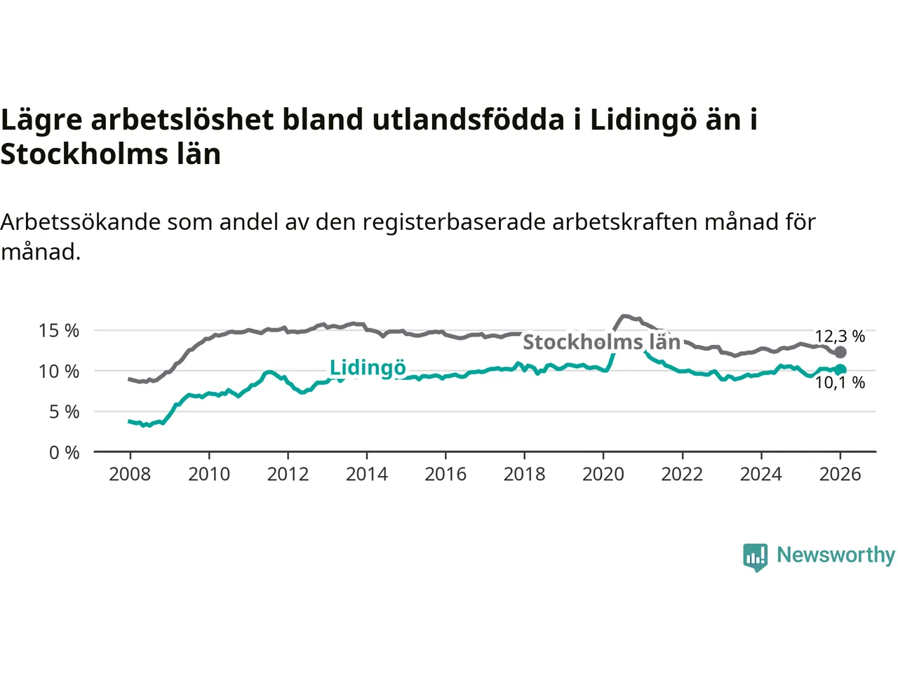 Arbetslösheten bland utlandsfödda ökar på Lidingö – medan den sjunker i många andra kommuner i Stockholms län