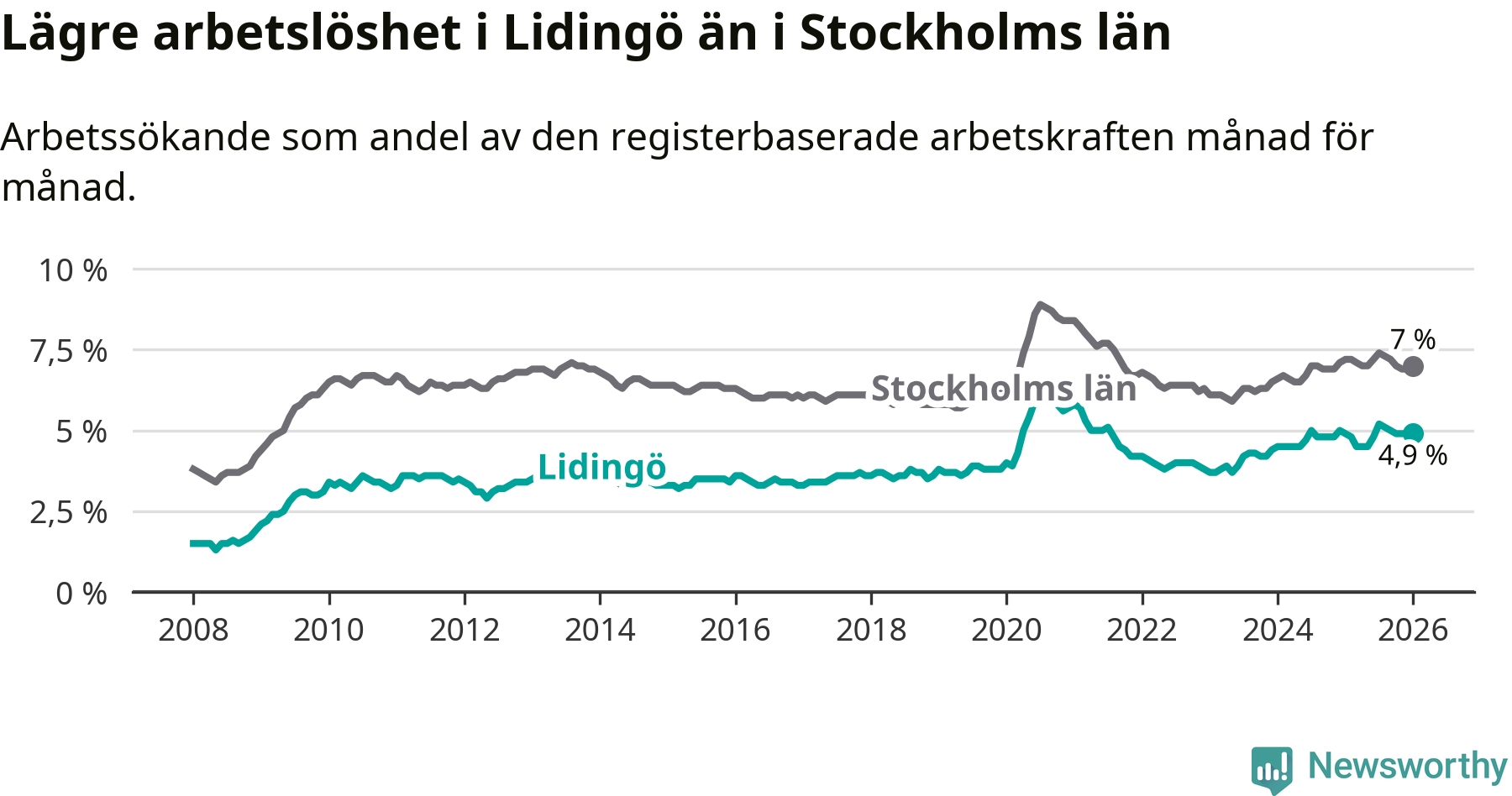 Graf: Arbetslöshet i Lidingö kommun och Stockholms län