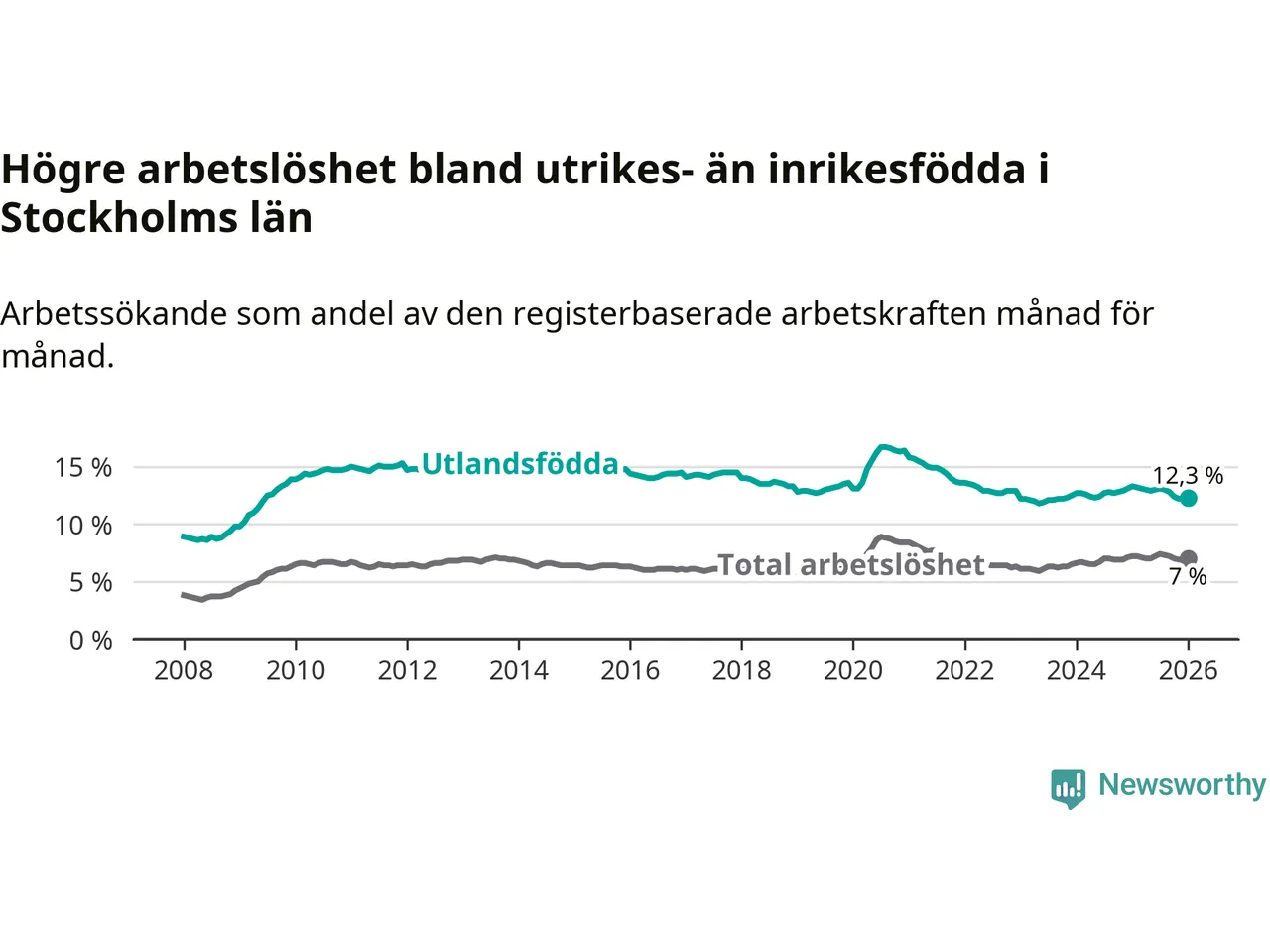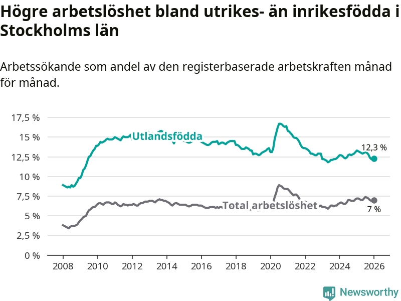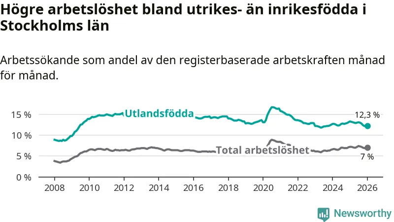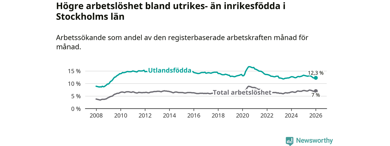 Läs mer om arbetslösheten bland utlandsfödda längre ner i den här texten.