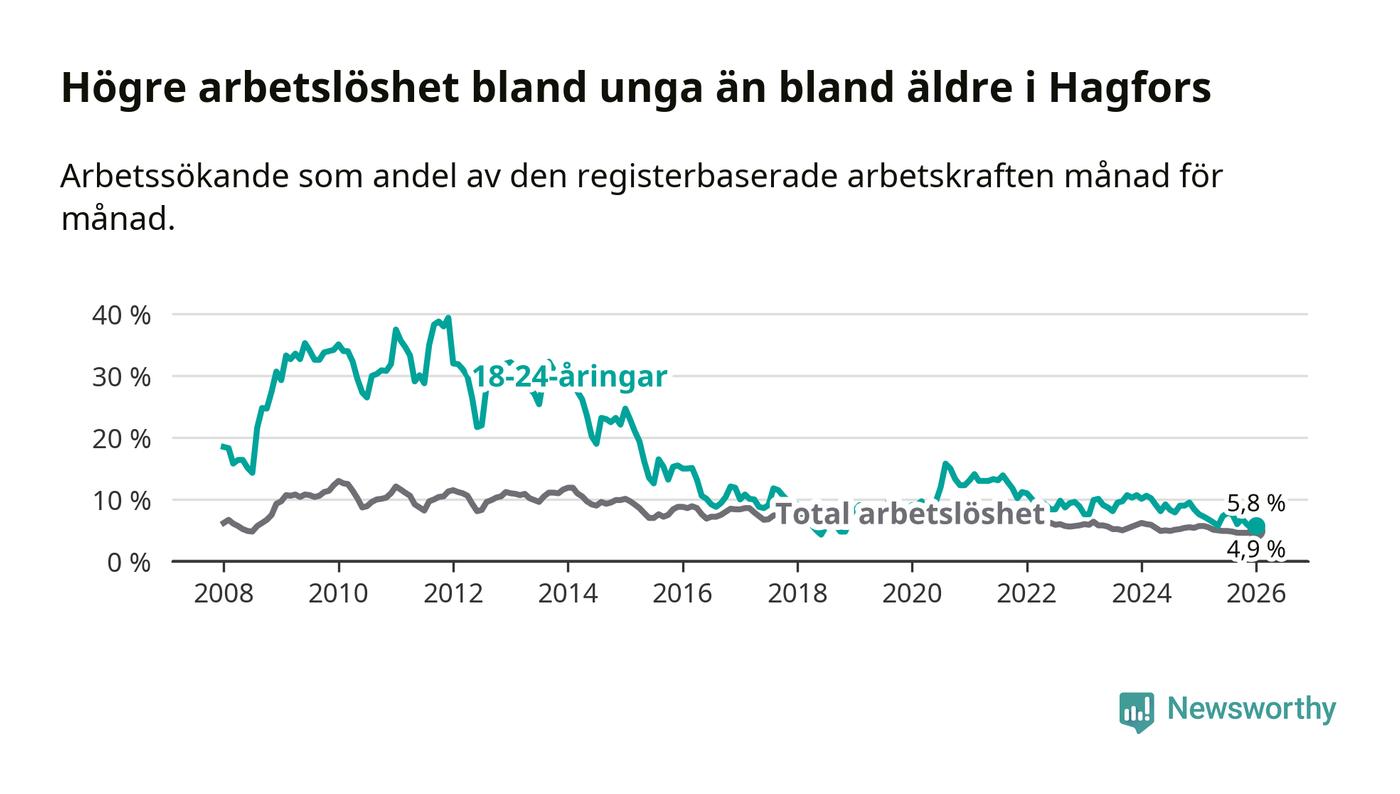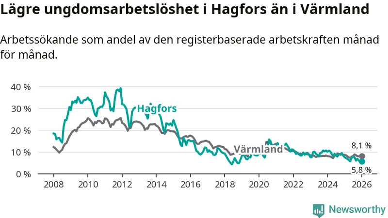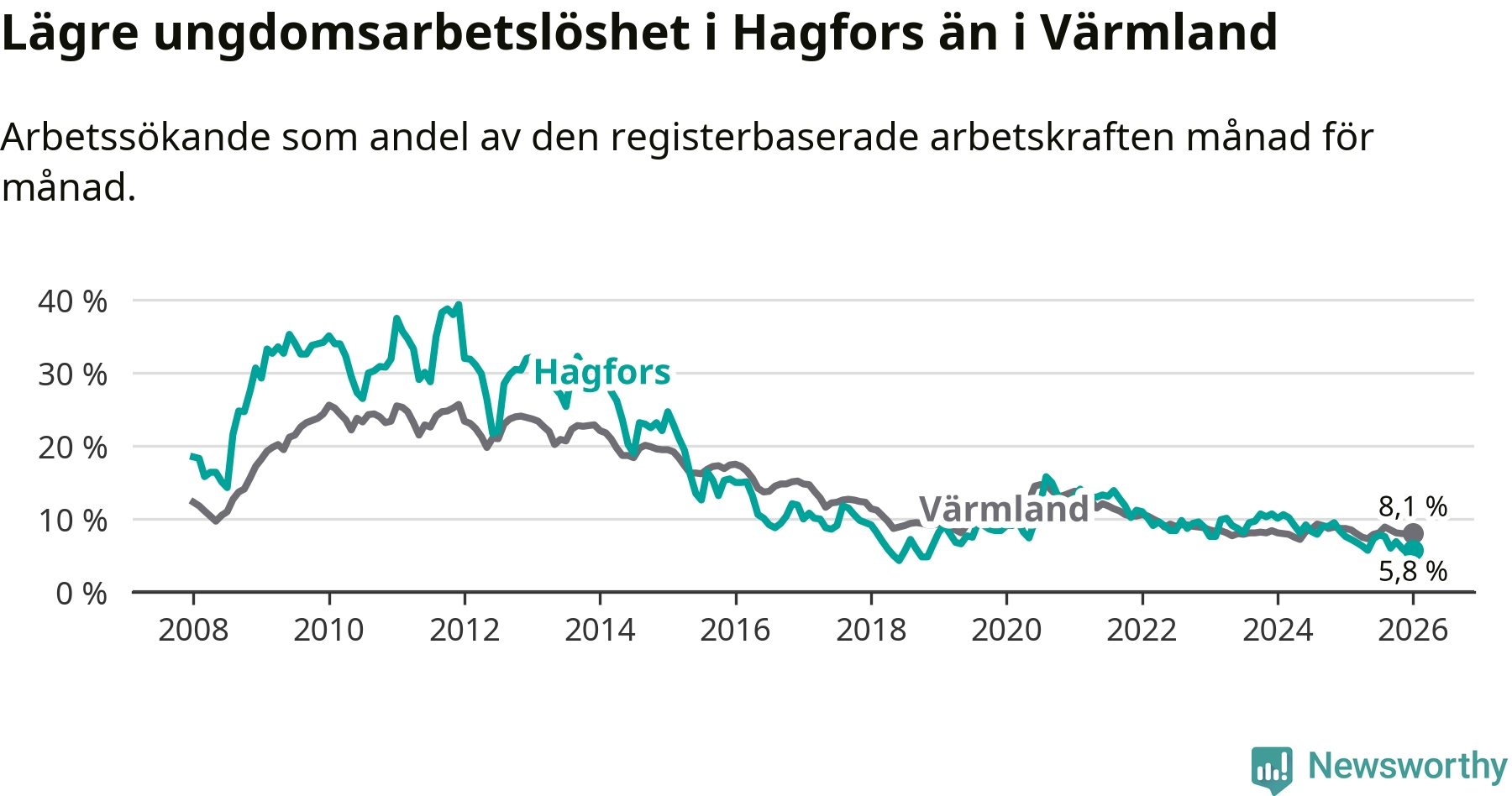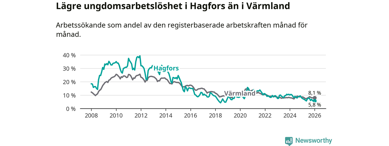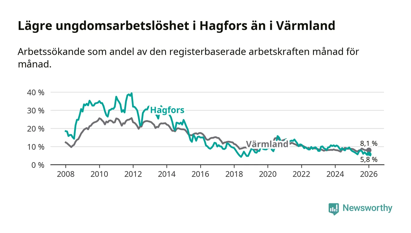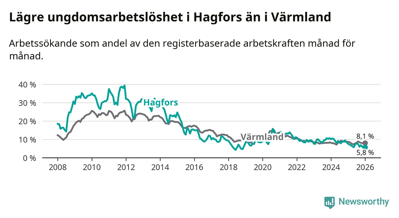 Graf: Arbetslöshet bland unga i Hagfors kommun och Värmlands län