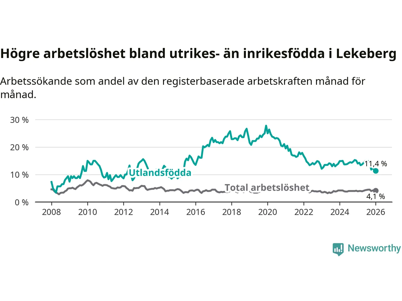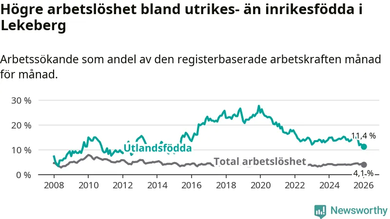 Läs mer om arbetslösheten bland utlandsfödda längre ner i den här texten.