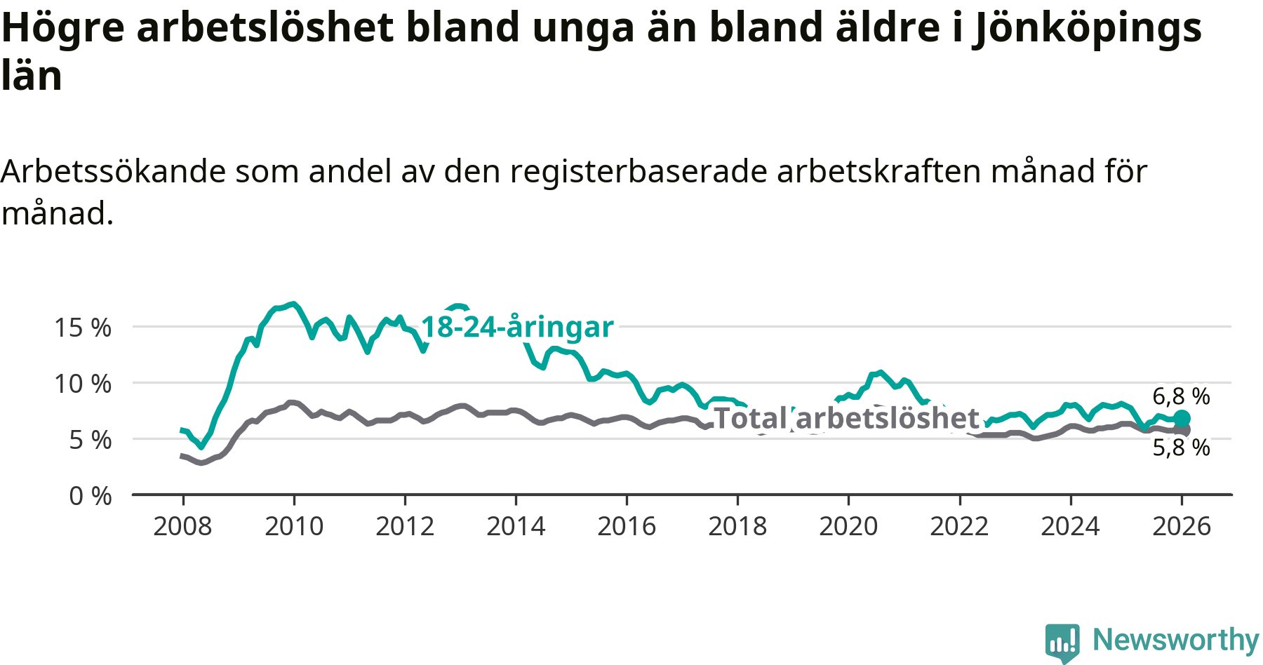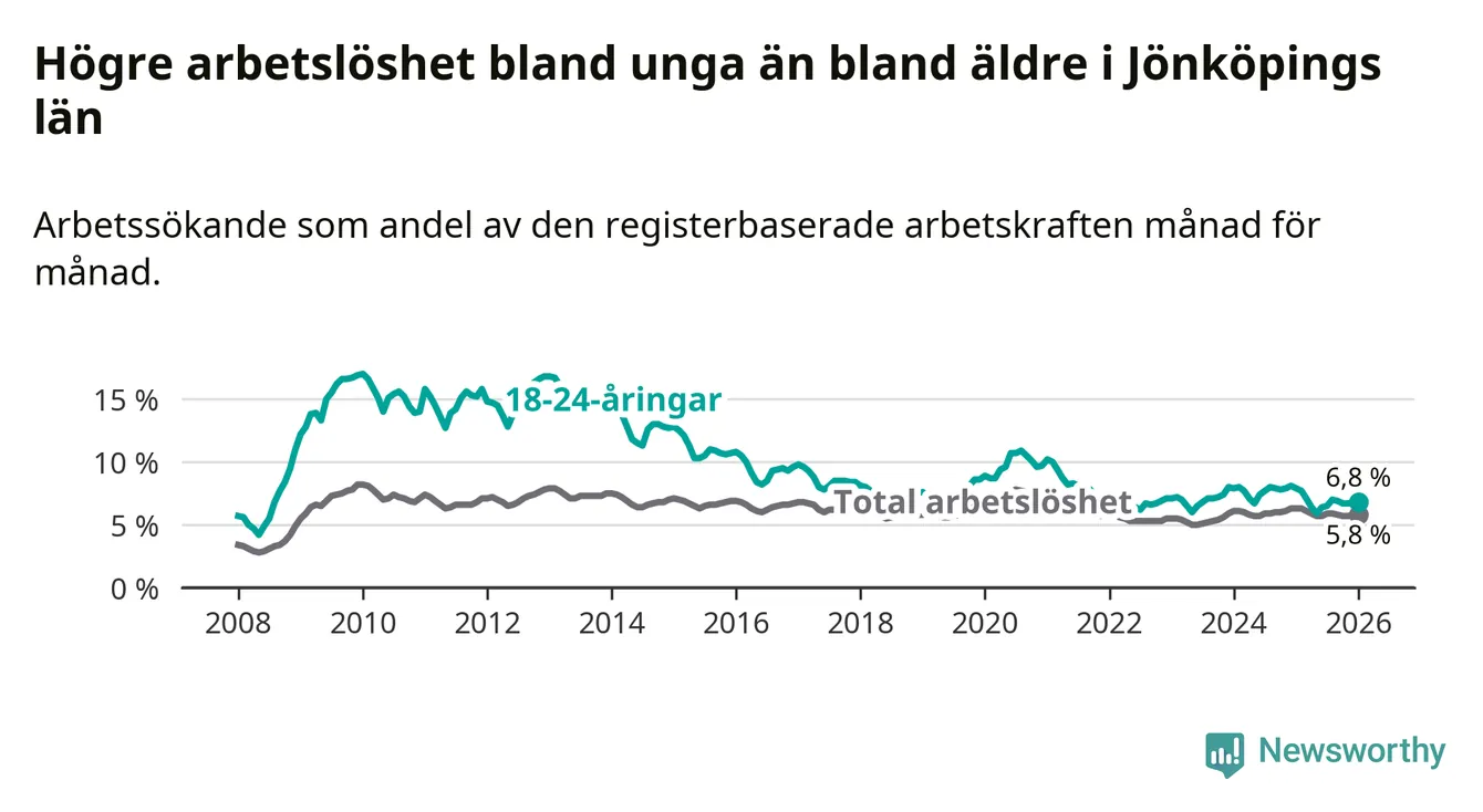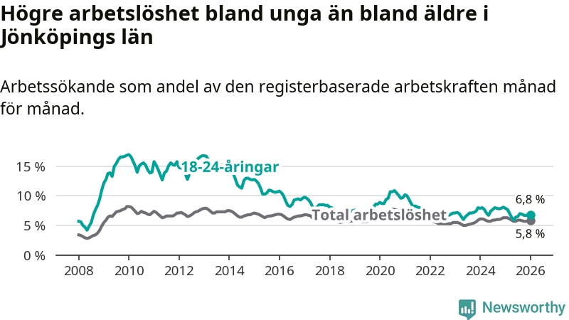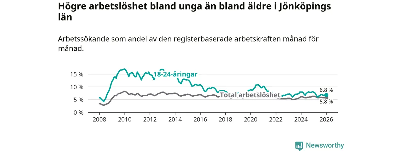 Arbetslöshet bland 18–24-åringar i Jönköpings län