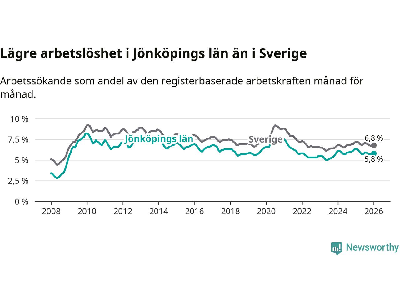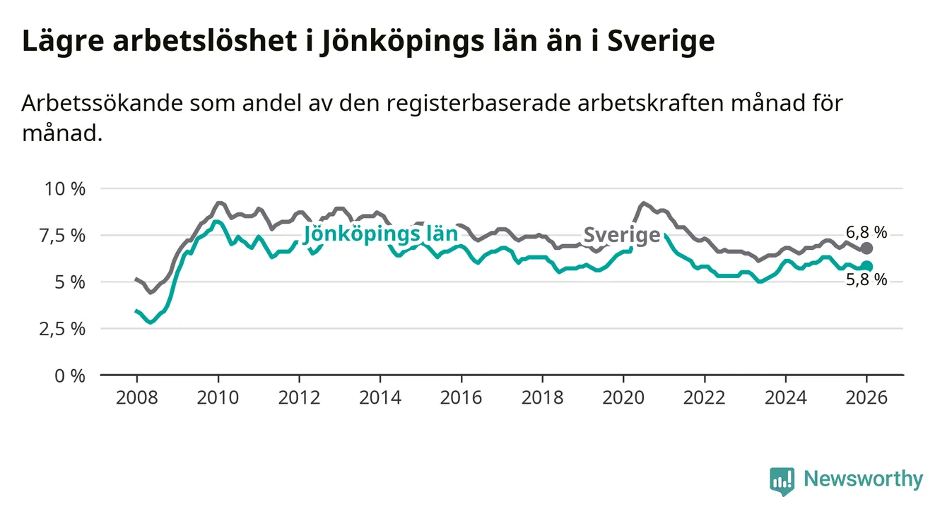 Graf: Arbetslöshet i Jönköpings län och Sverige