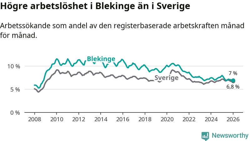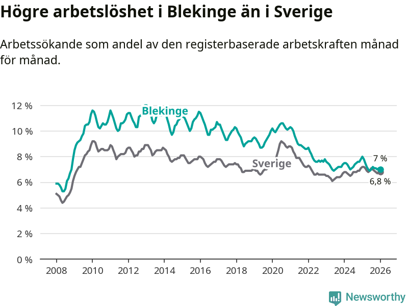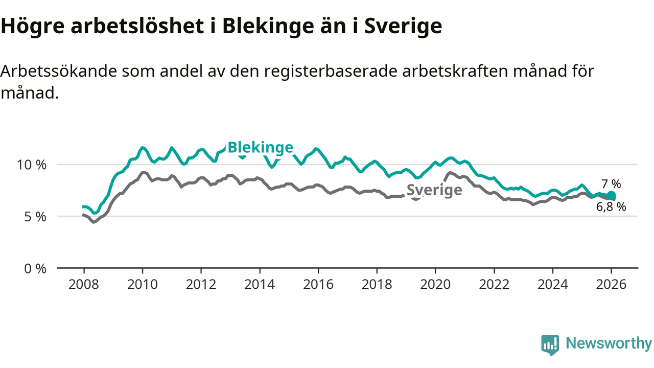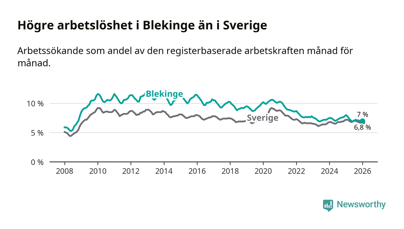 Graf: Arbetslöshet i Blekinge län och Sverige