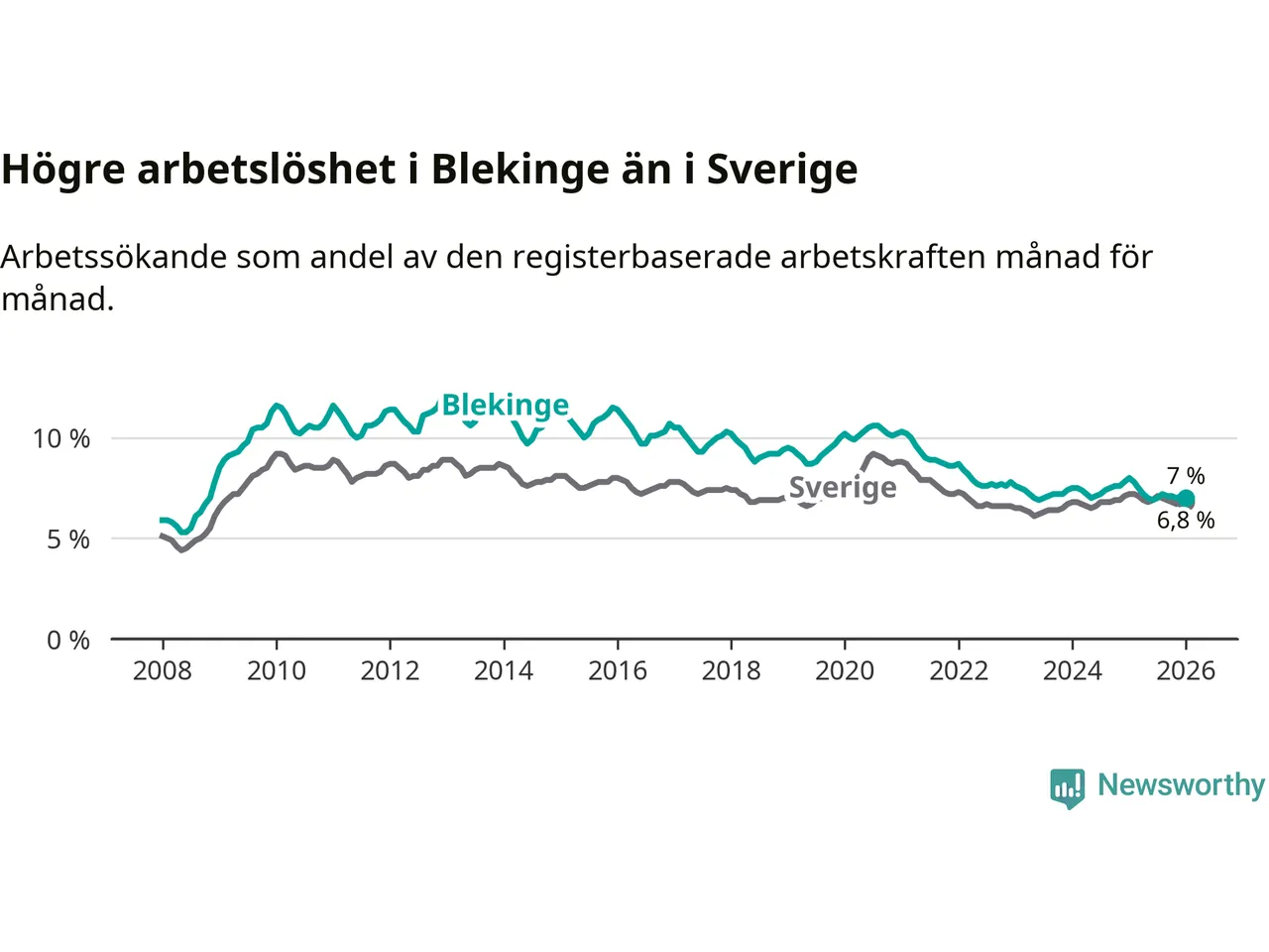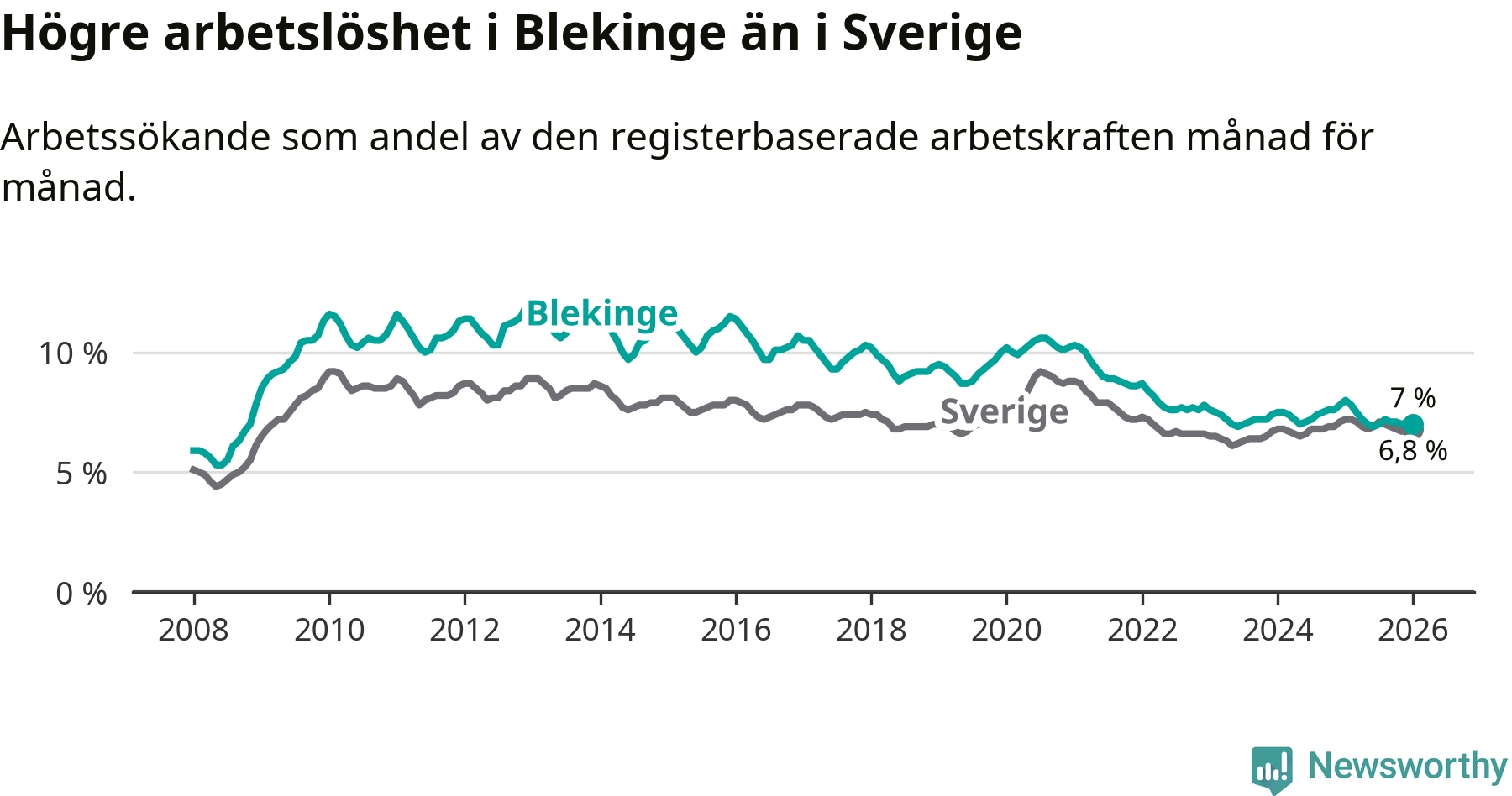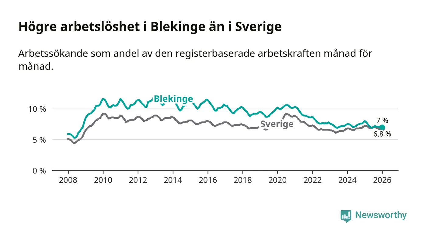Graf: Arbetslöshet i Blekinge län och Sverige