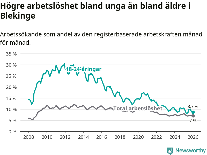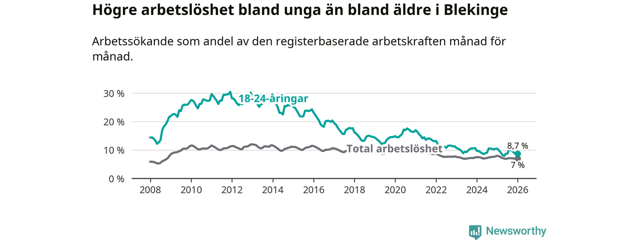 Arbetslöshet bland 18–24-åringar i Blekinge län