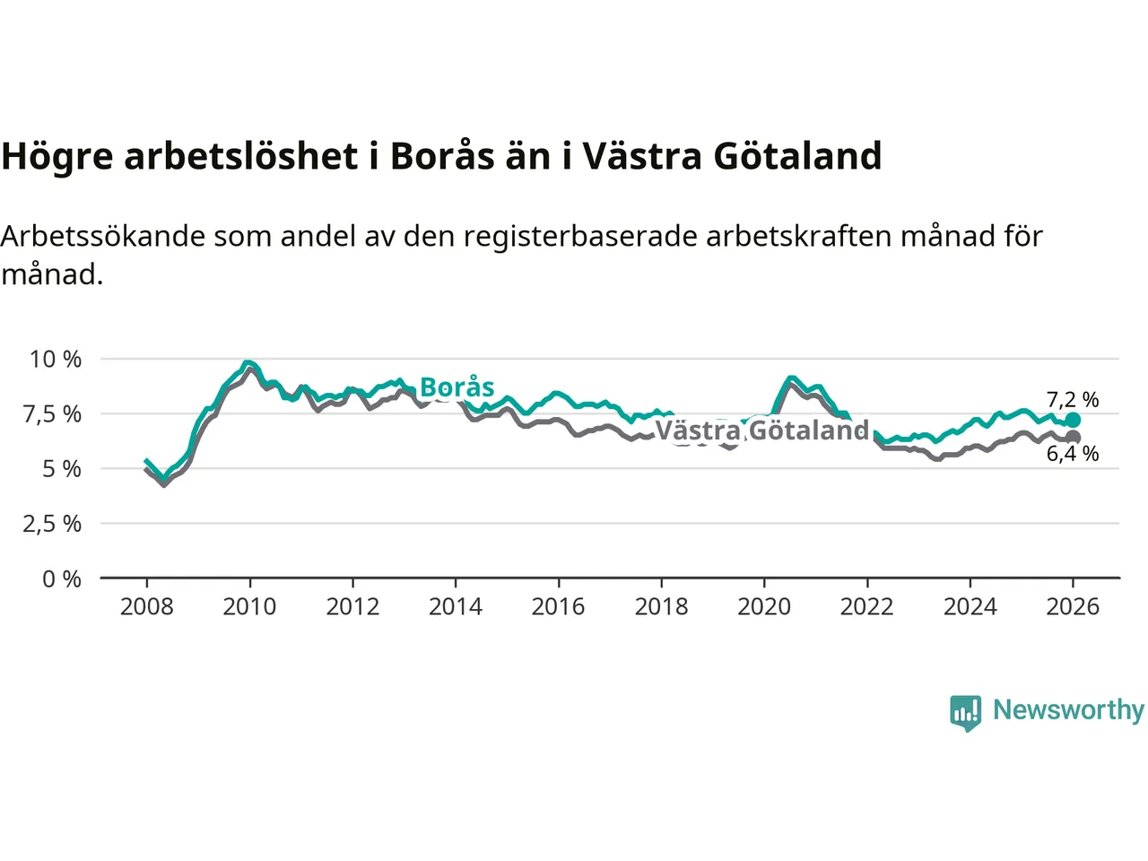 | Borås | 7,2 % | −0,4 % ▼ |