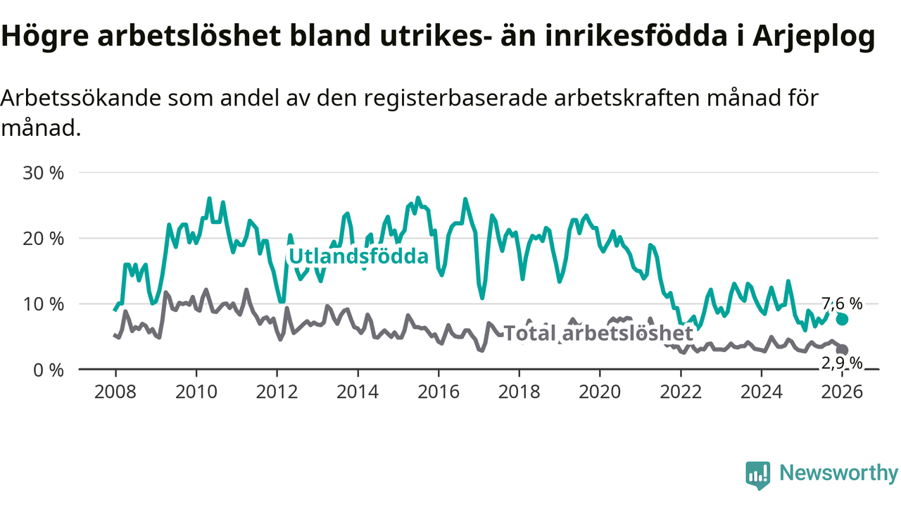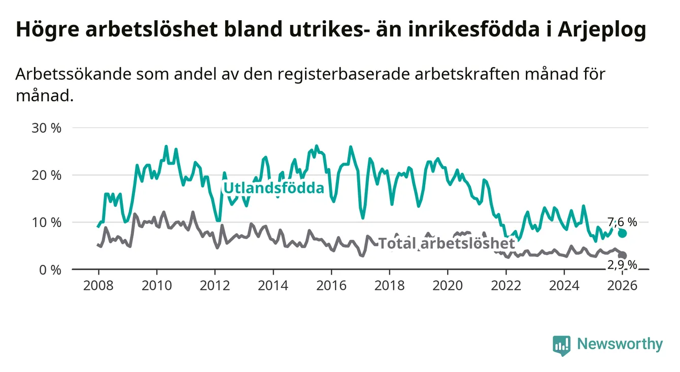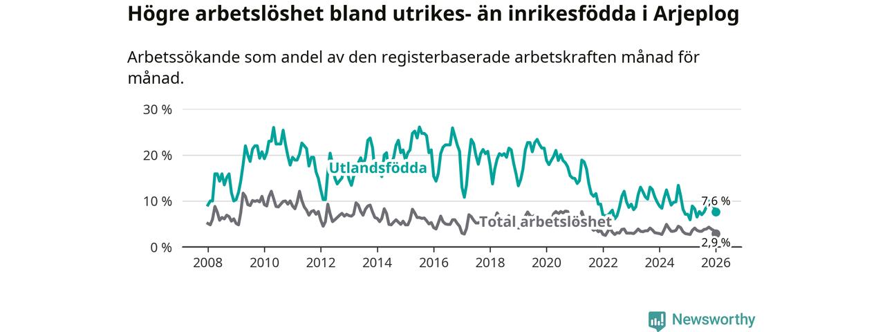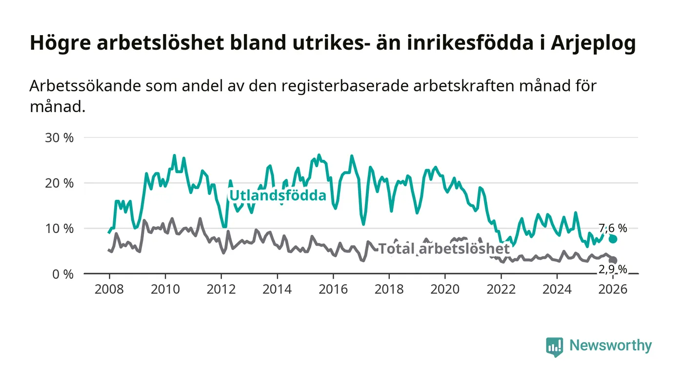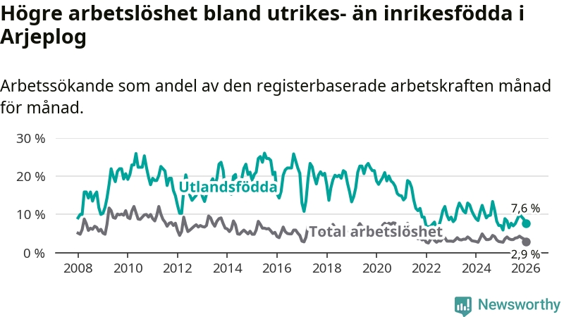 Läs mer om arbetslösheten bland utlandsfödda längre ner i den här texten.