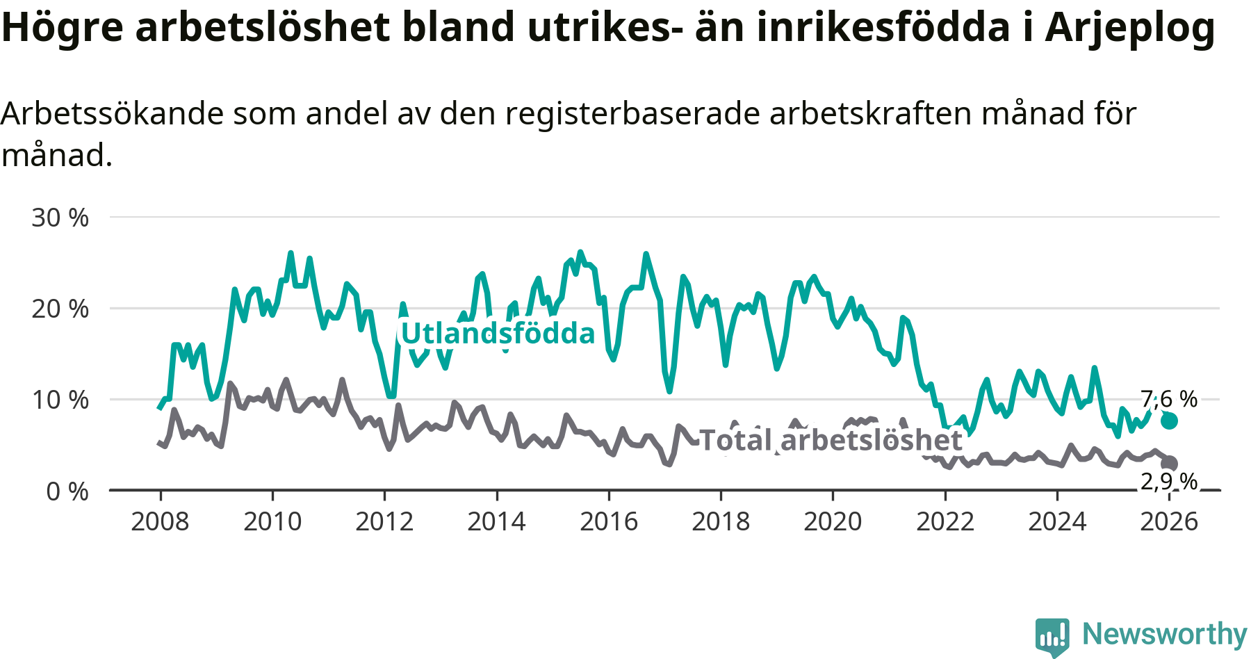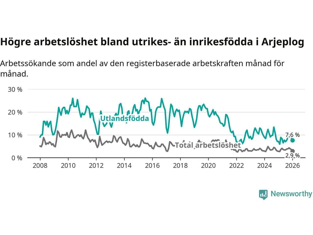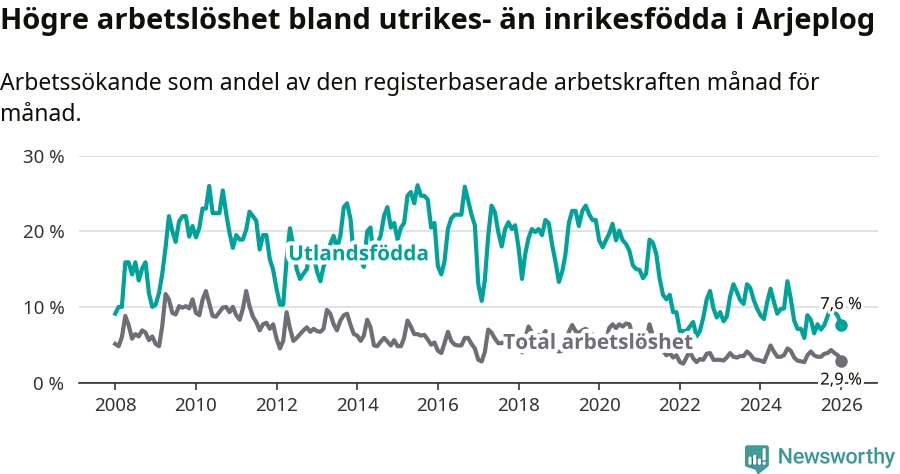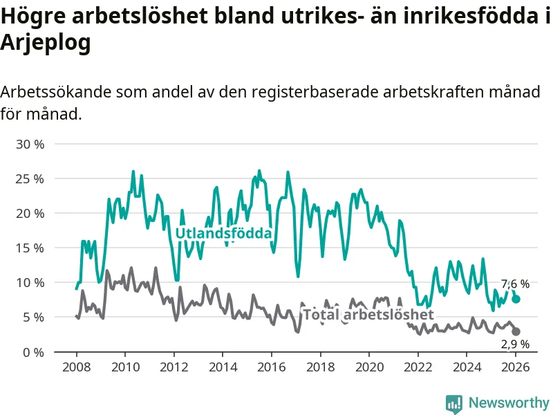 Läs mer om arbetslösheten bland utlandsfödda längre ner i den här texten.