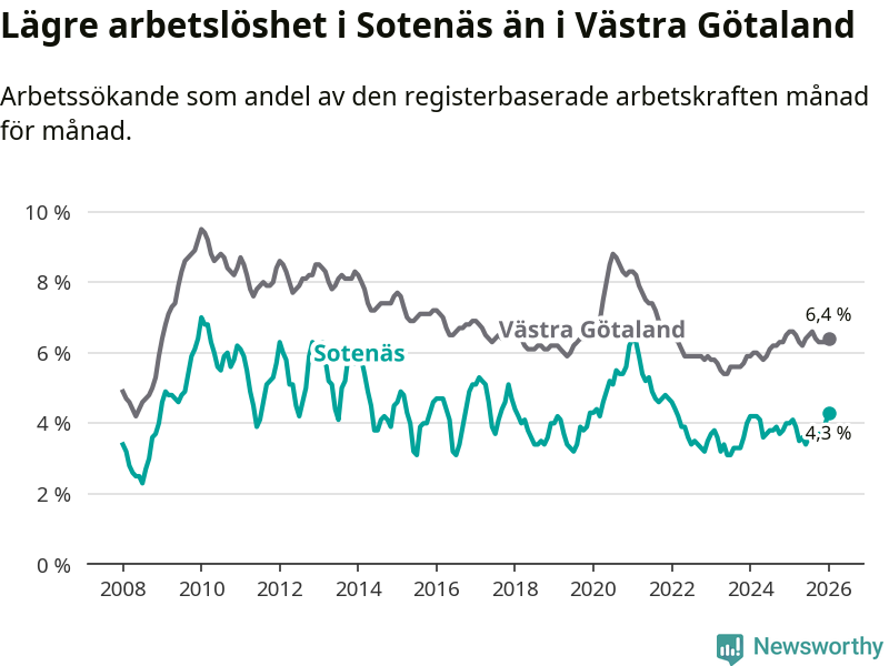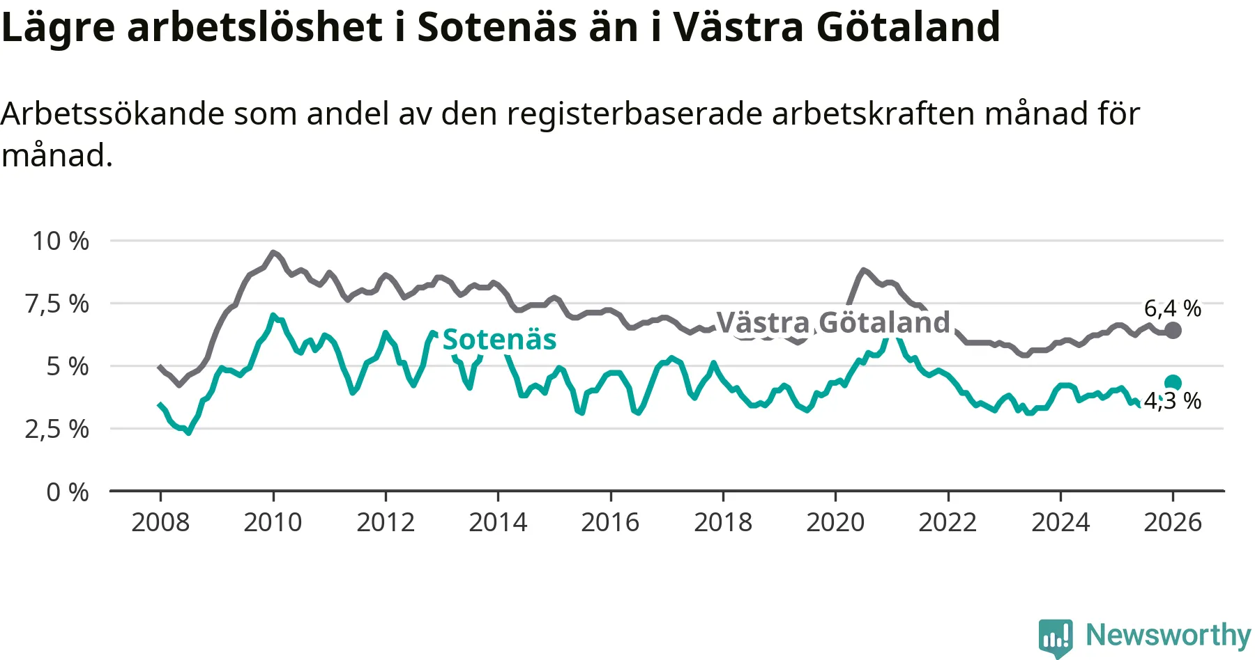 Graf: Arbetslöshet i Sotenäs kommun och Västra Götalands län