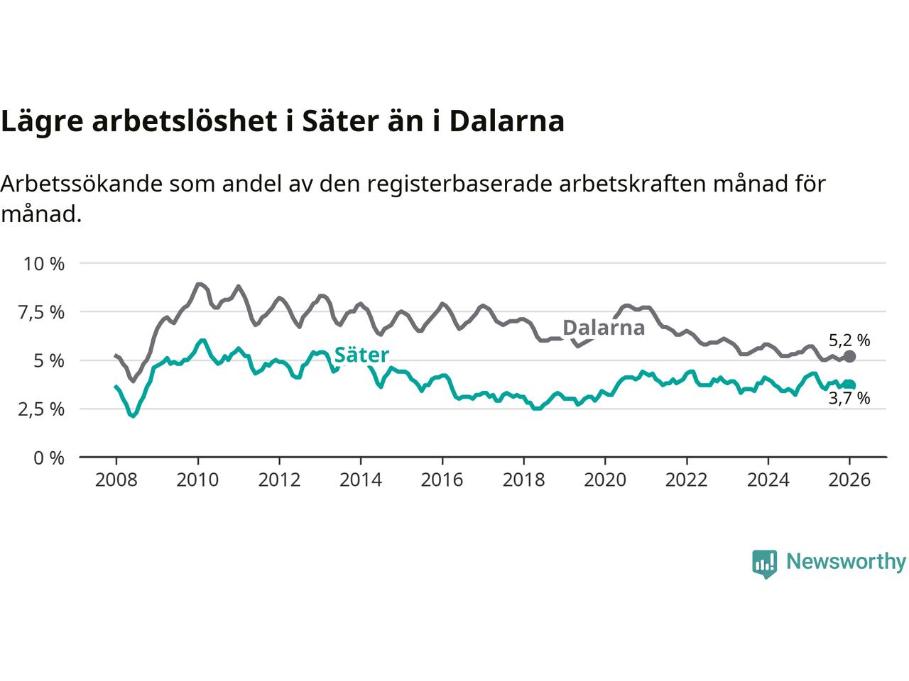 Graf: Arbetslöshet i Säters kommun och Dalarnas län
