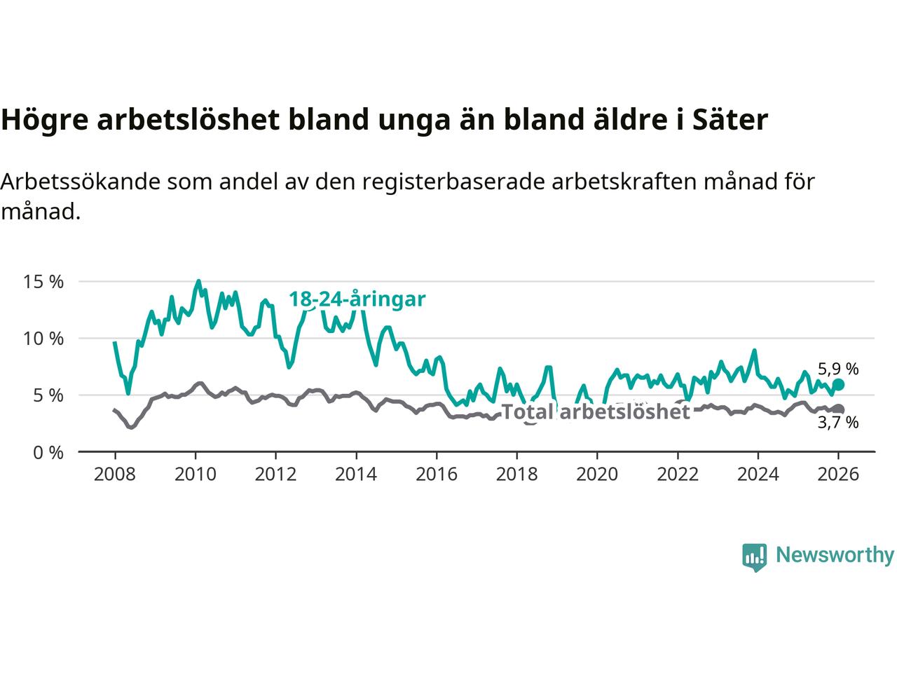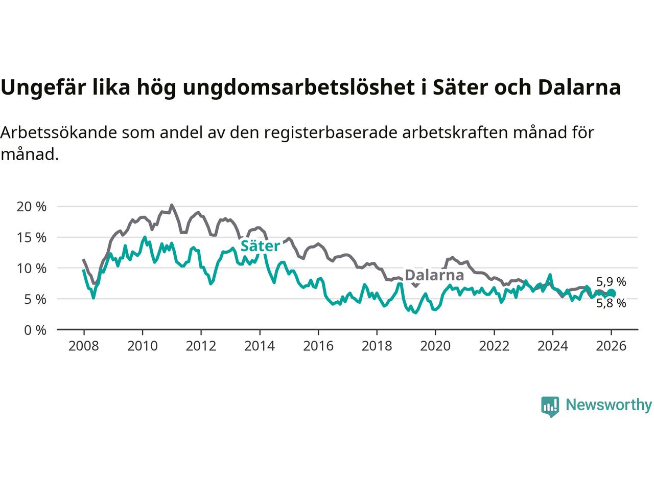 Graf: Arbetslöshet bland unga i Säters kommun och Dalarnas län