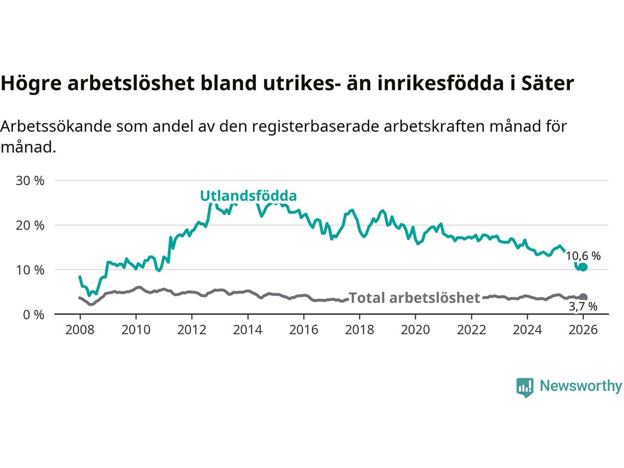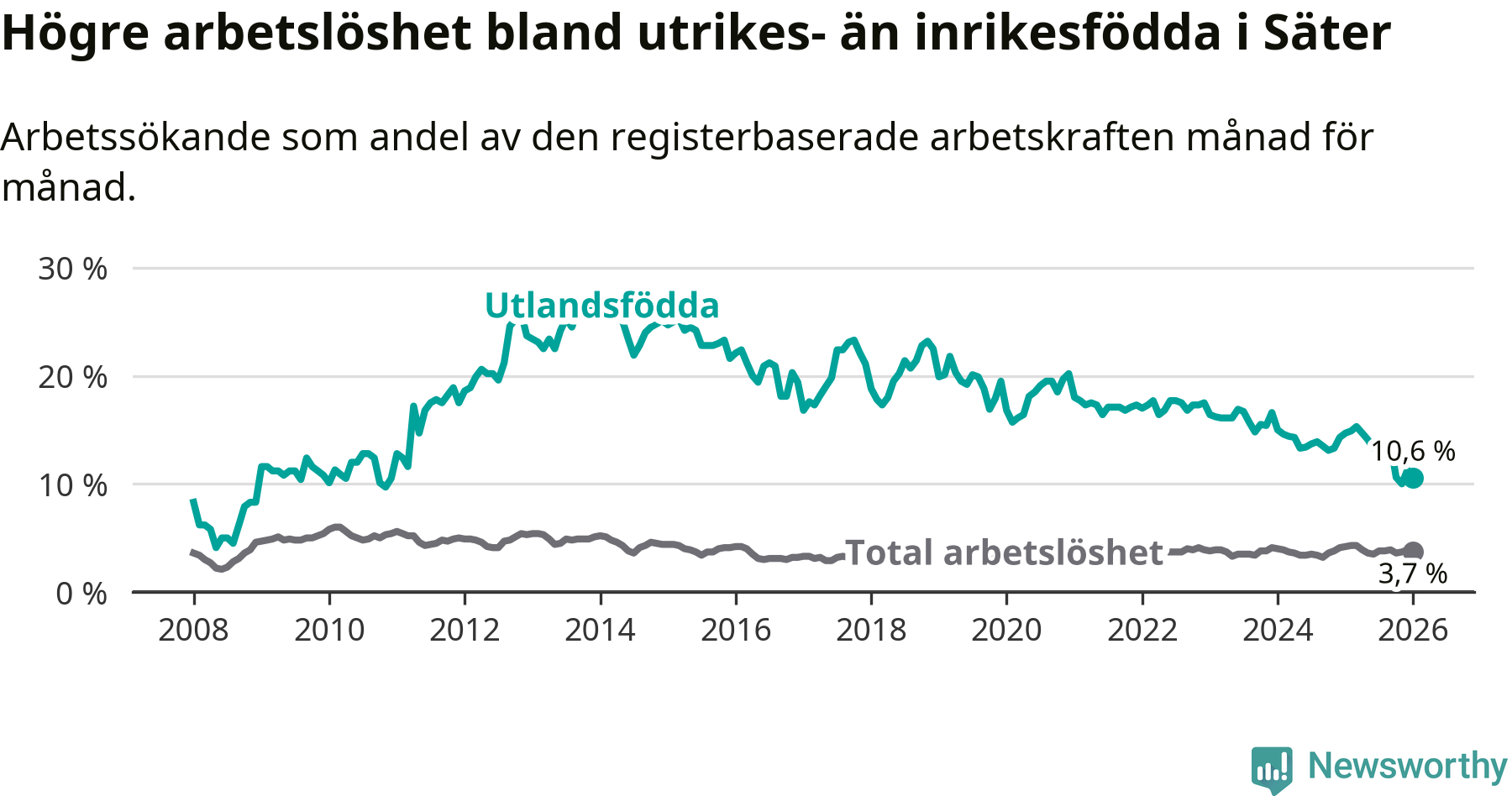 Läs mer om arbetslösheten bland utlandsfödda längre ner i den här texten.