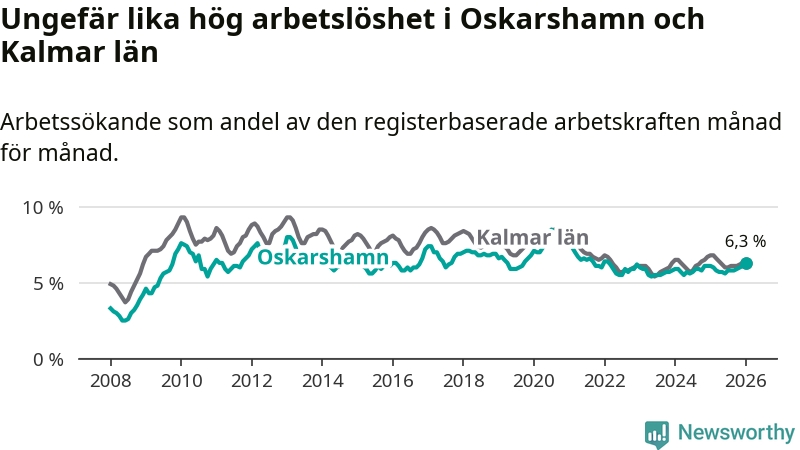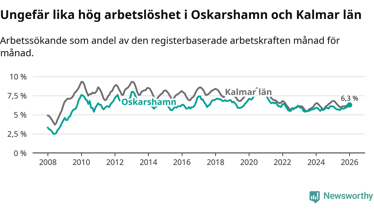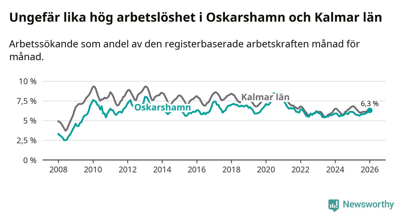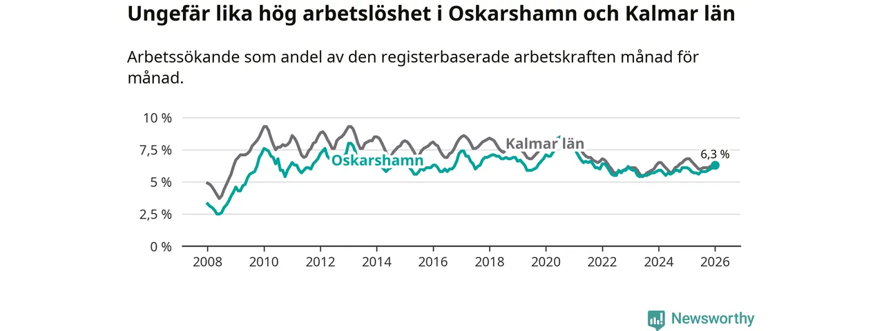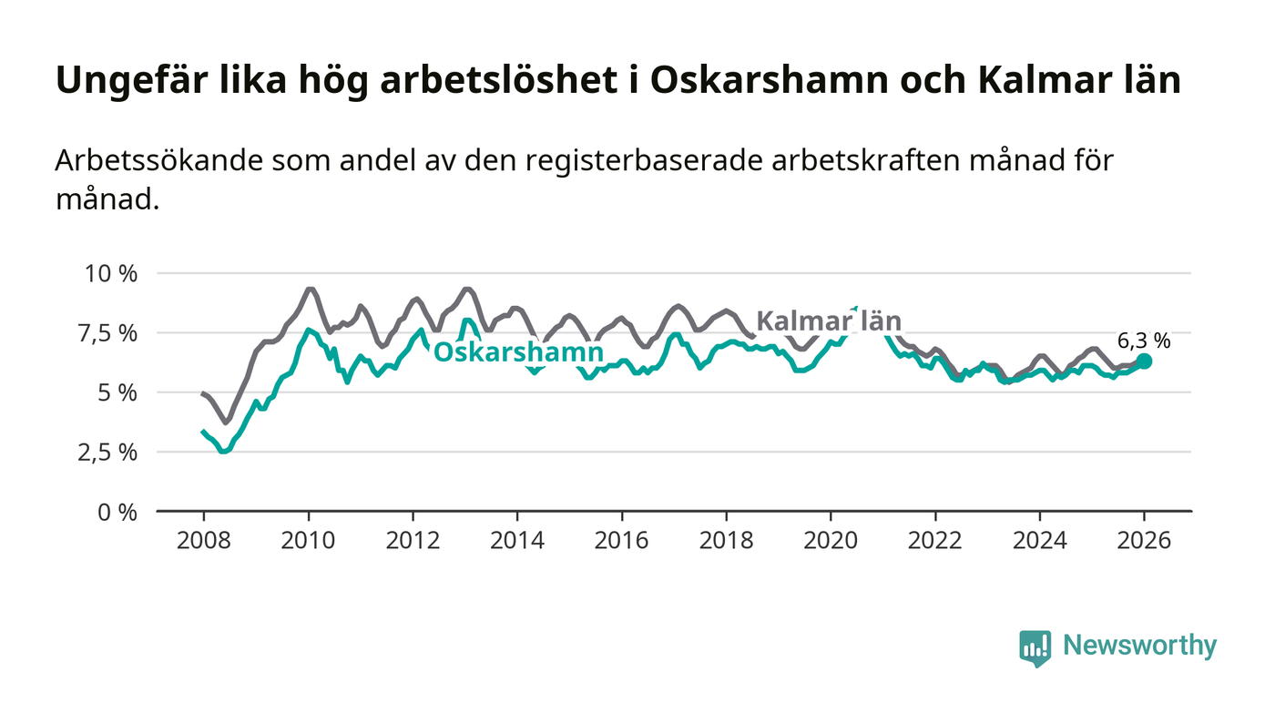 Arbetslösheten stiger i Oskarshamn – medan den sjunker i Kalmar län