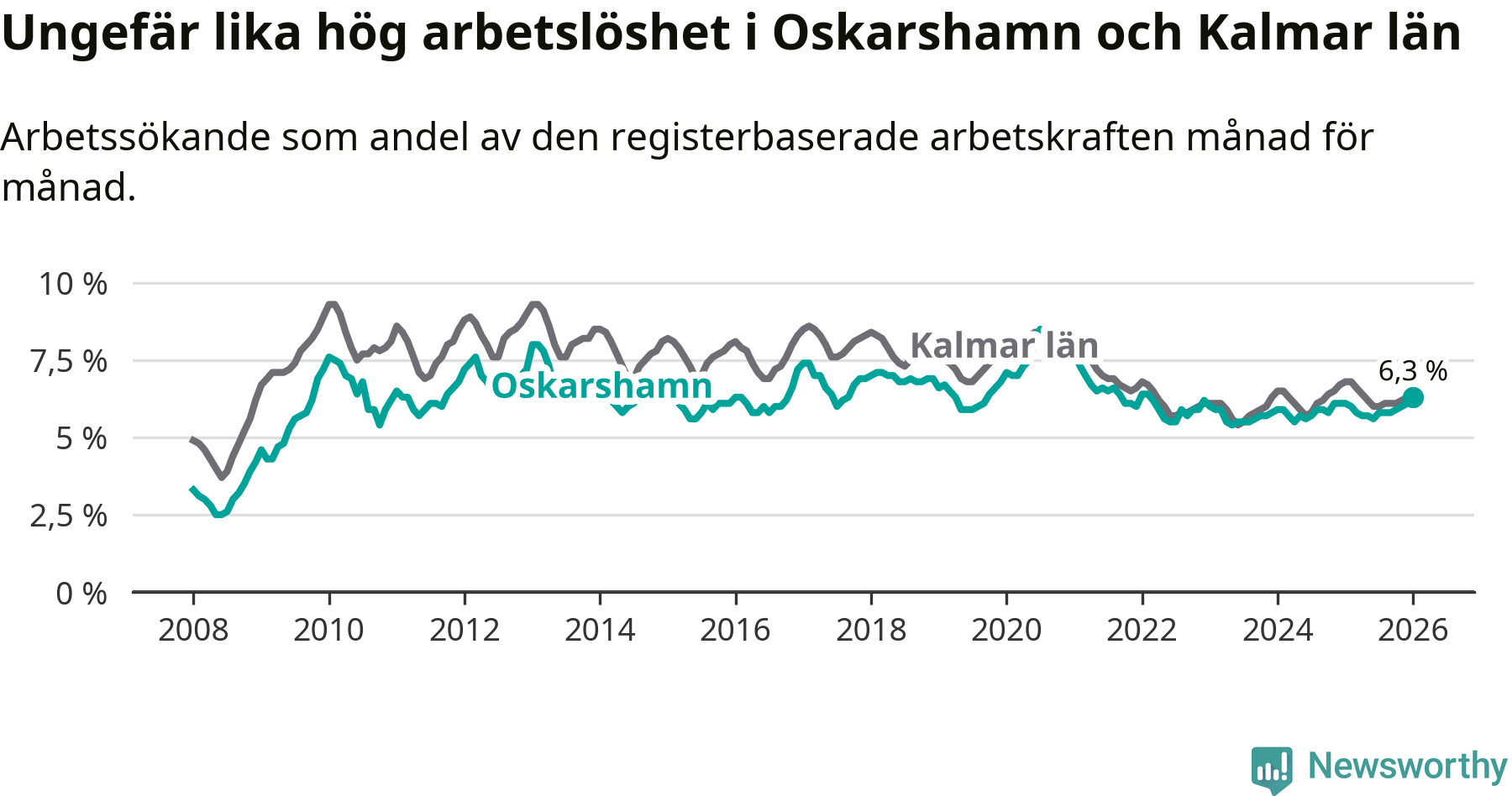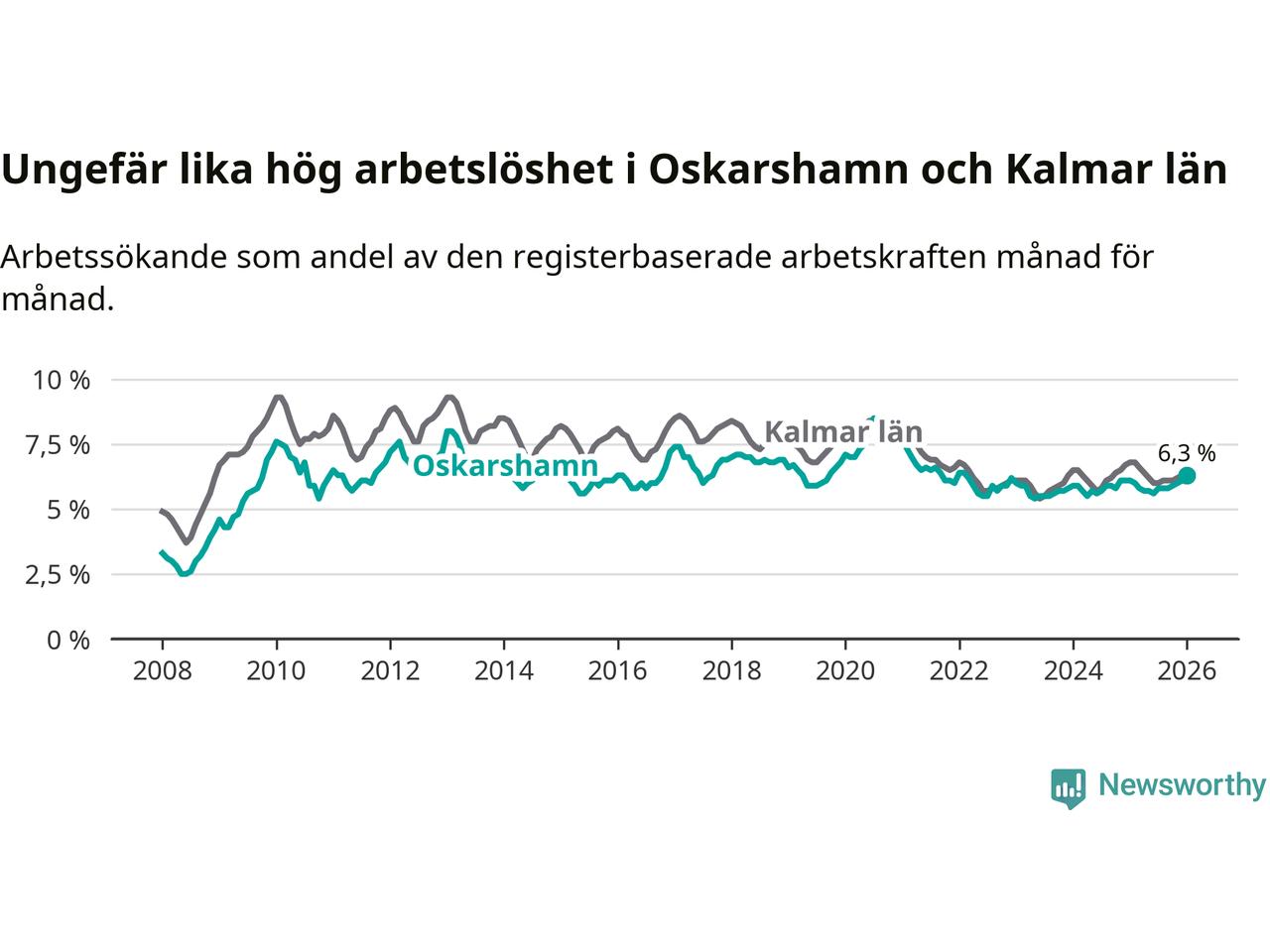 Graf: Arbetslöshet i Oskarshamns kommun och Kalmar län