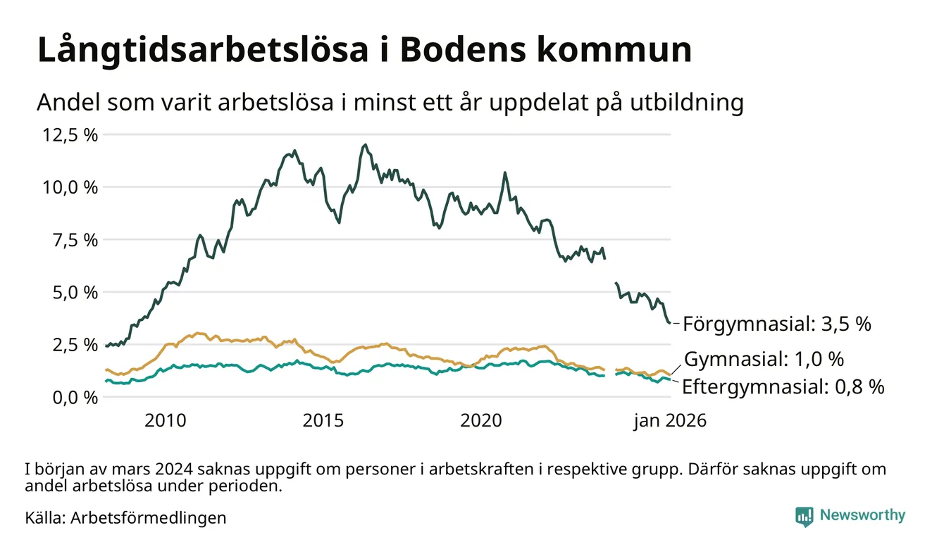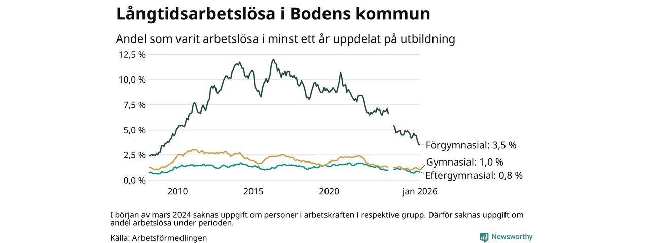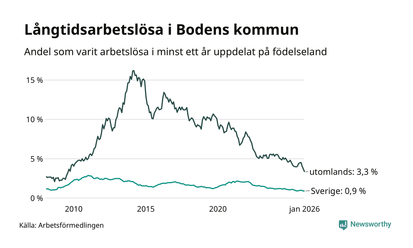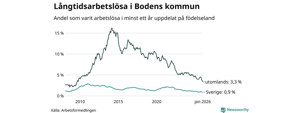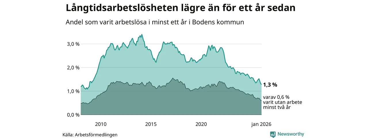 Långtidsarbetslöshet i Boden i januari 2026