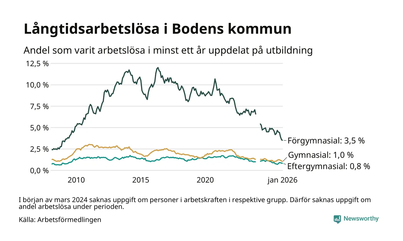 Boden: Lägsta långtids­arbets­lösheten sedan november 2008