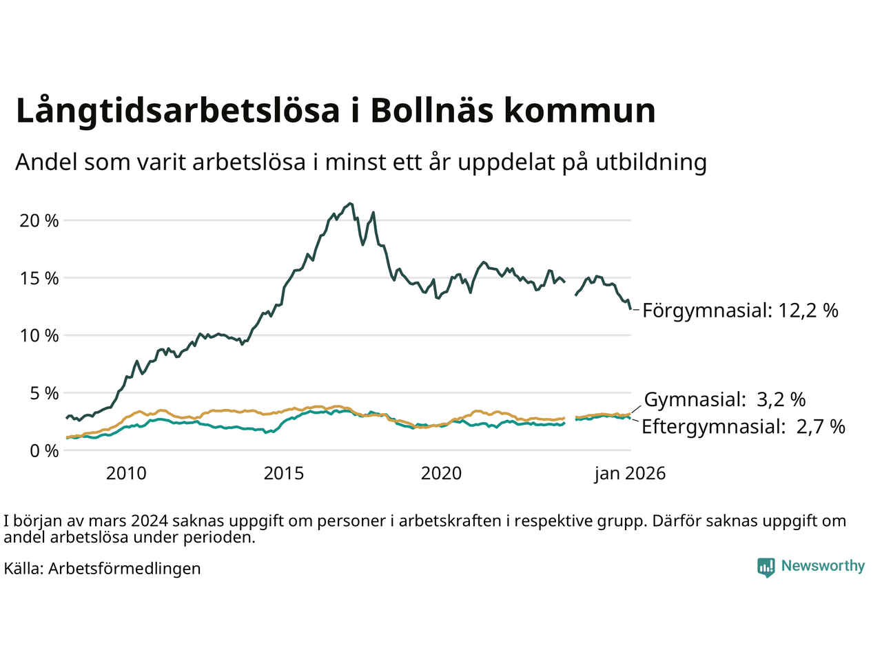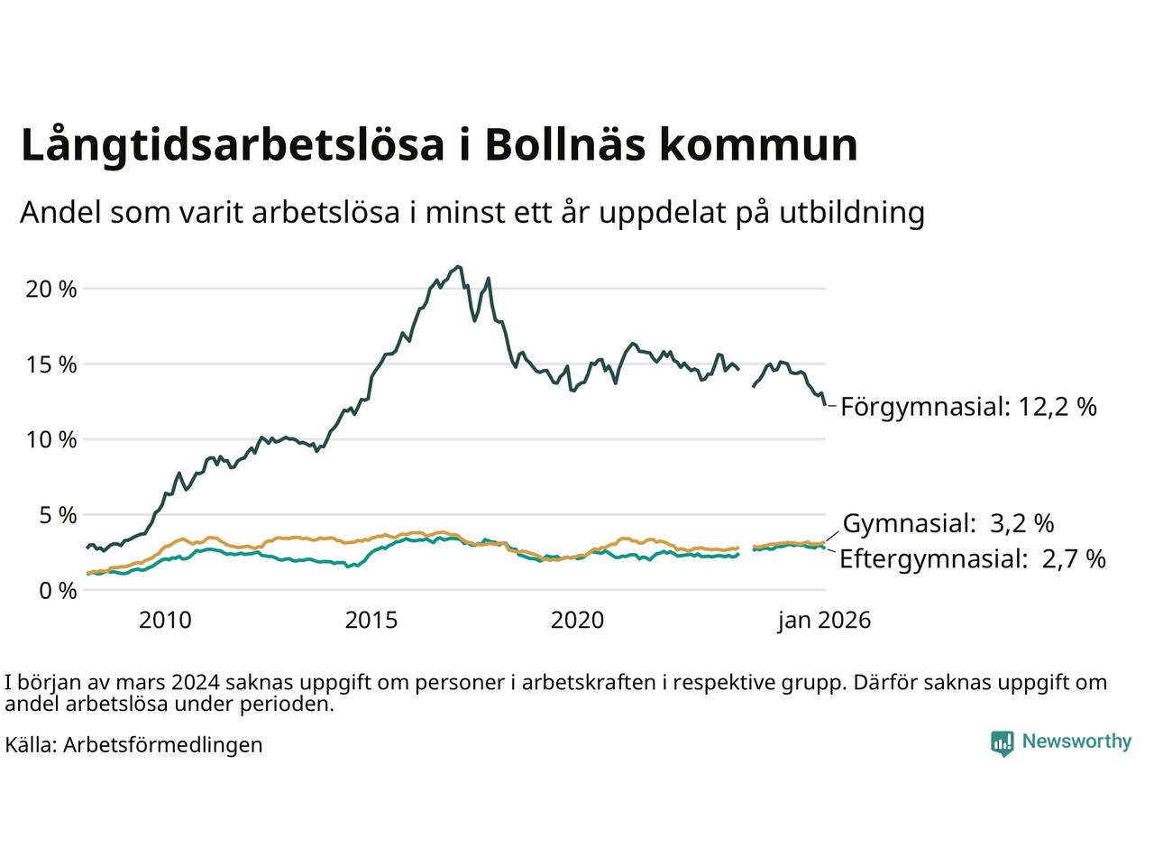 | Bland dem med eftergymnasial utbildning | 2,7 % | 2,2 % | 1,9 % |