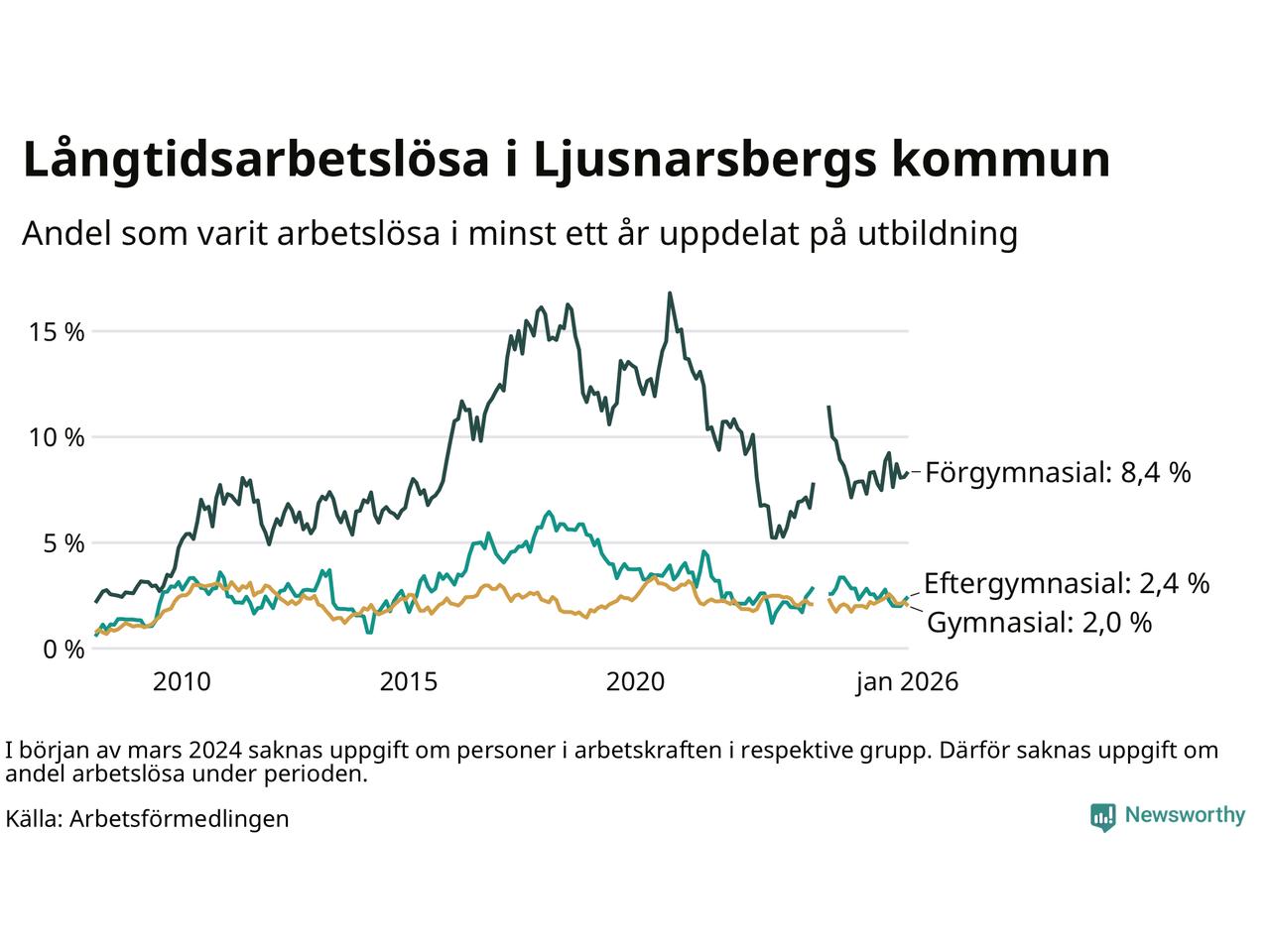 | Bland dem med gymnasieutbildning | 2,0 % | 2,3 % | 2,4 % |