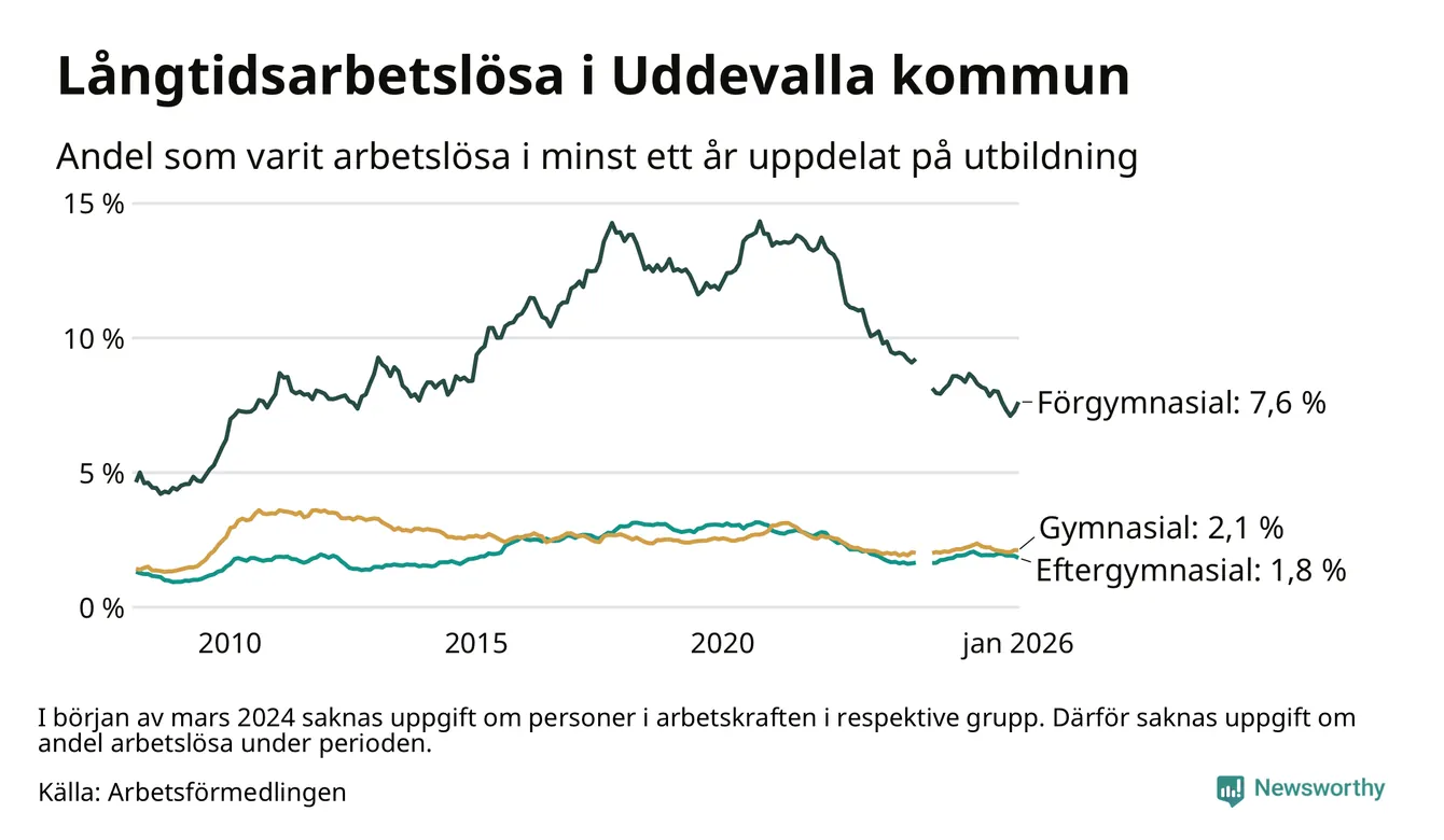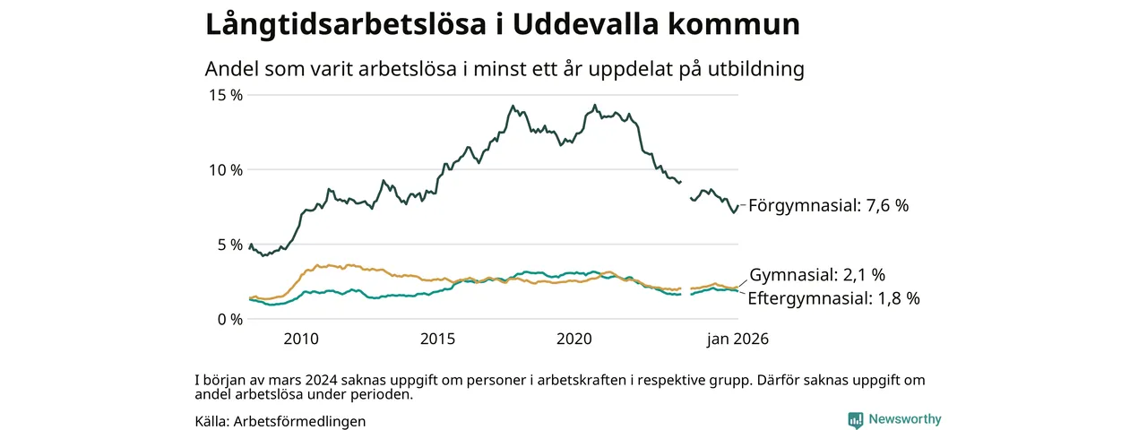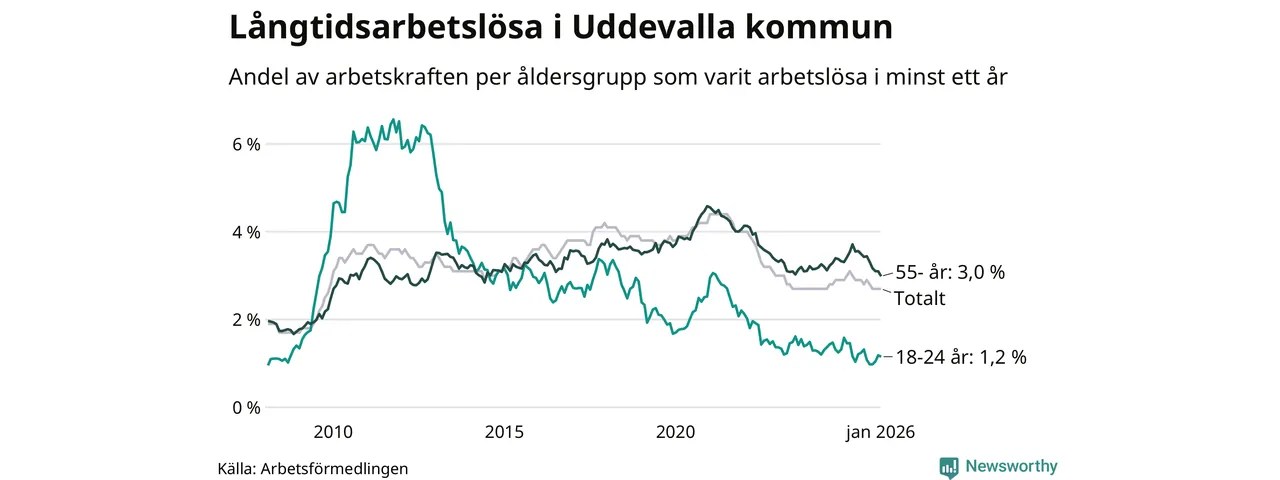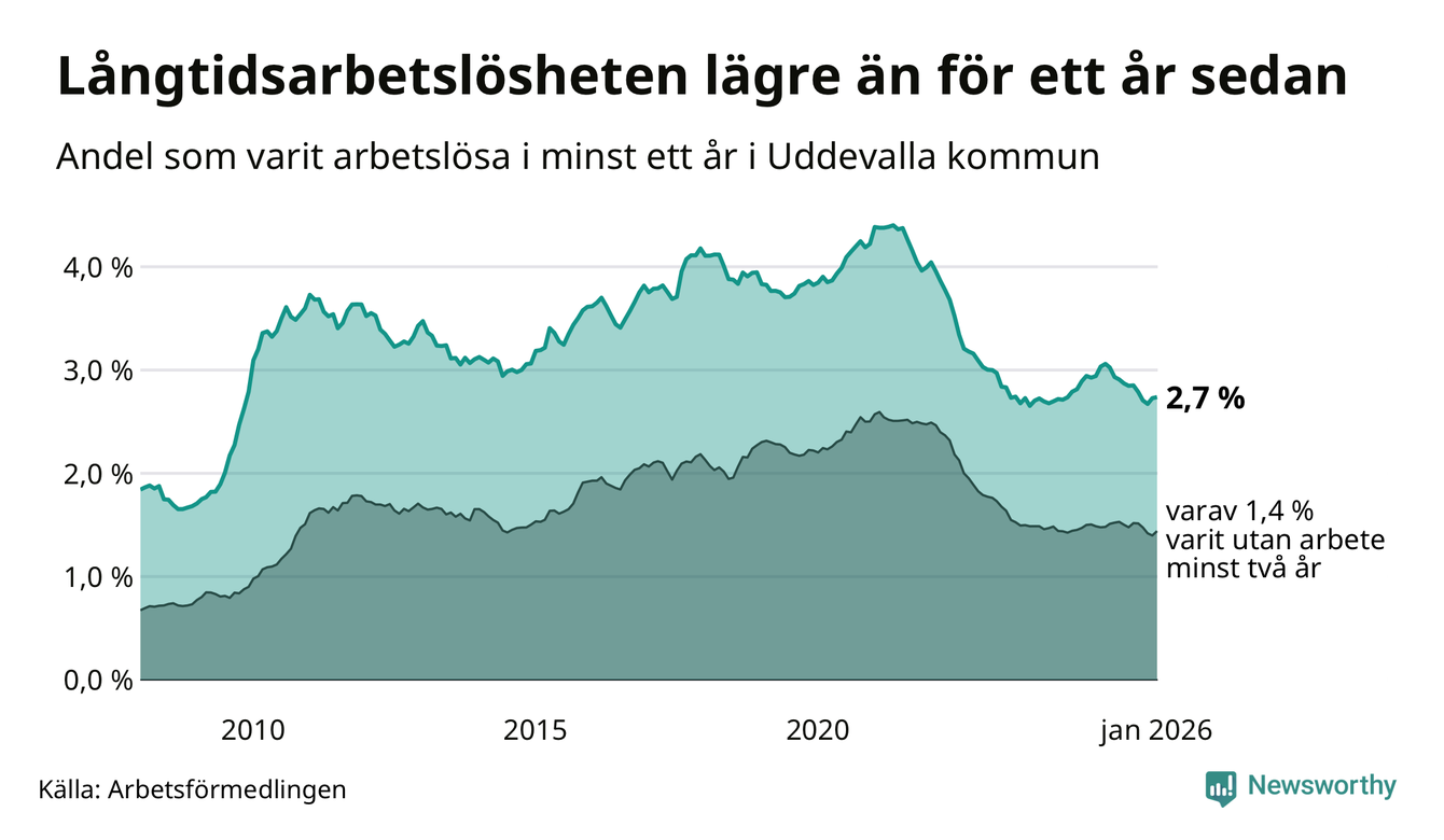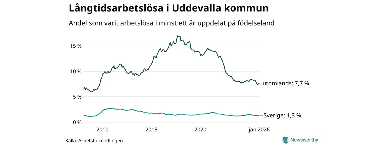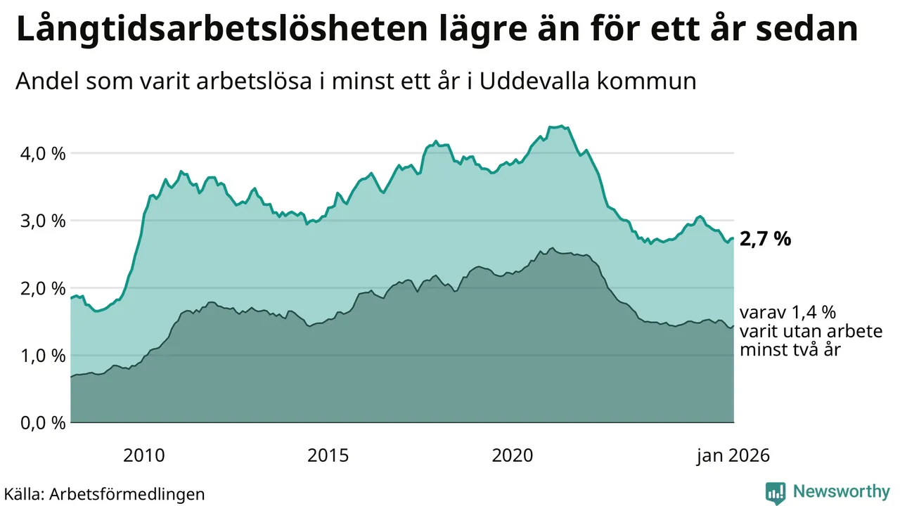 Långtidsarbetslöshet i Uddevalla i januari 2026