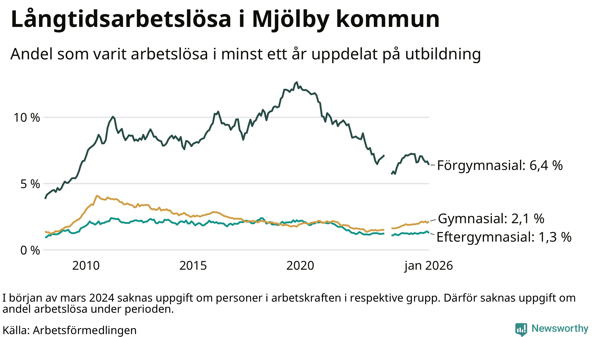 | Bland dem med eftergymnasial utbildning | 1,3 % | 1,9 % | 1,9 % |