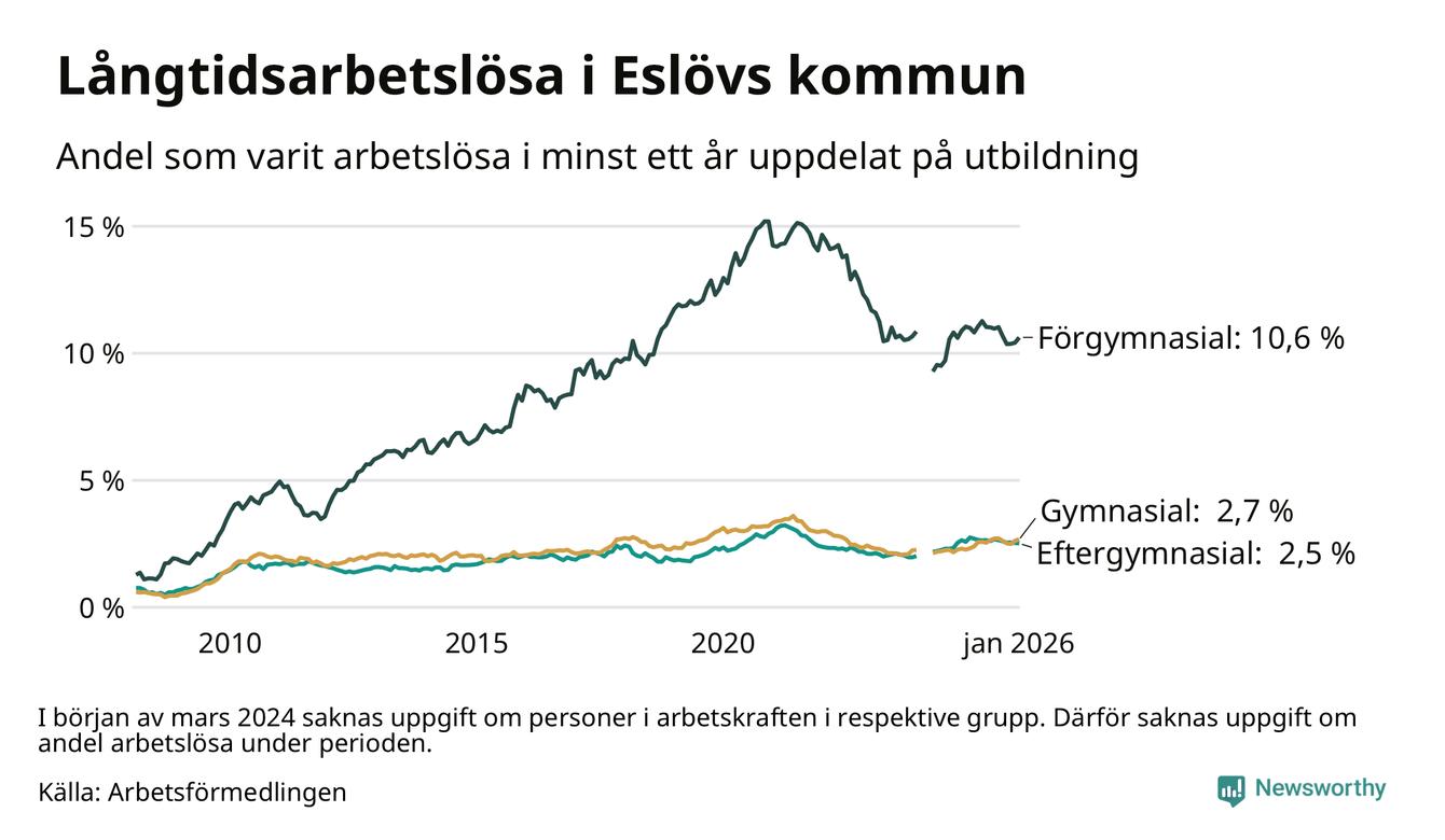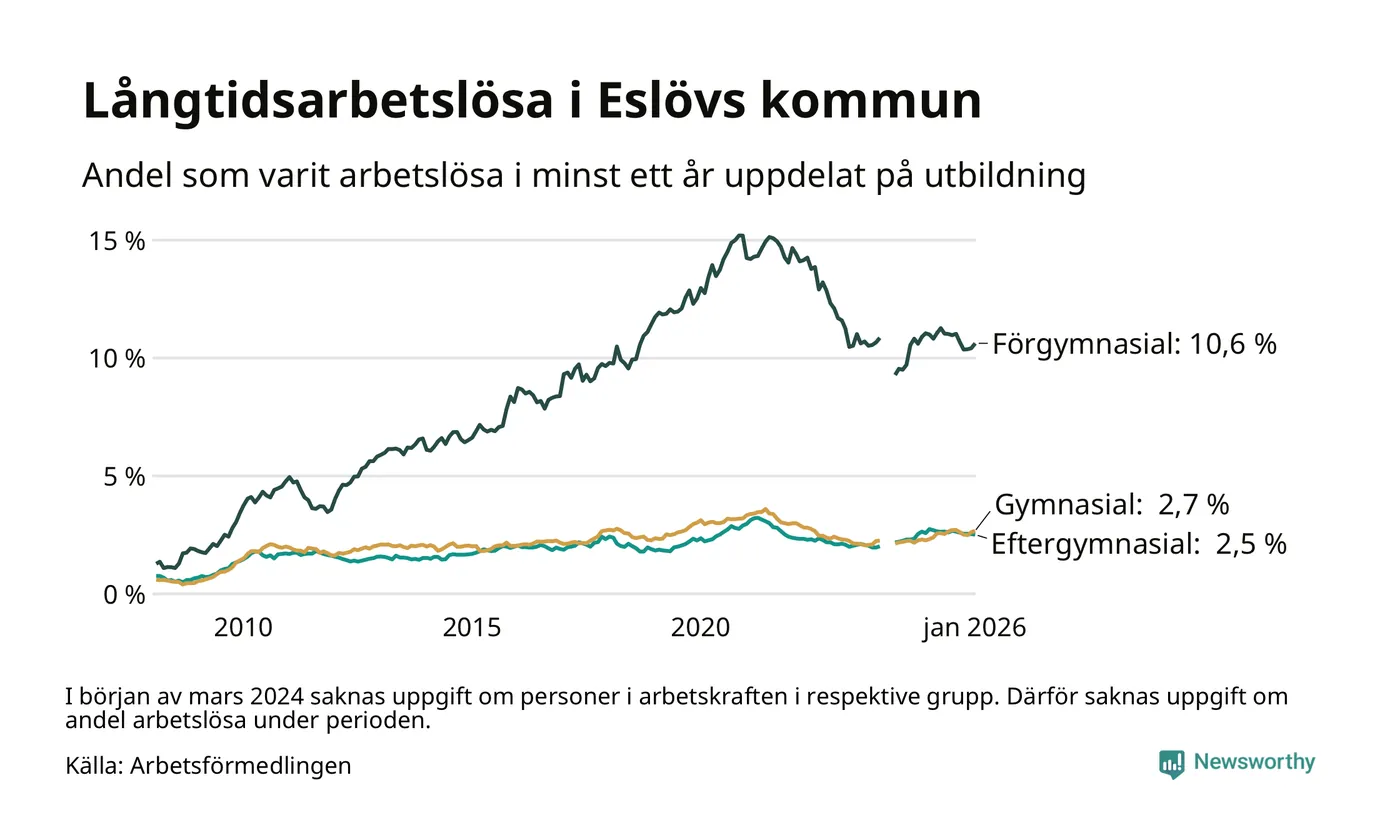 Så många är långtids­arbetslösa i Eslöv