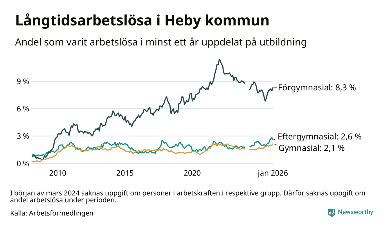 Heby: Högsta långtids­arbets­lösheten sedan april 2022
