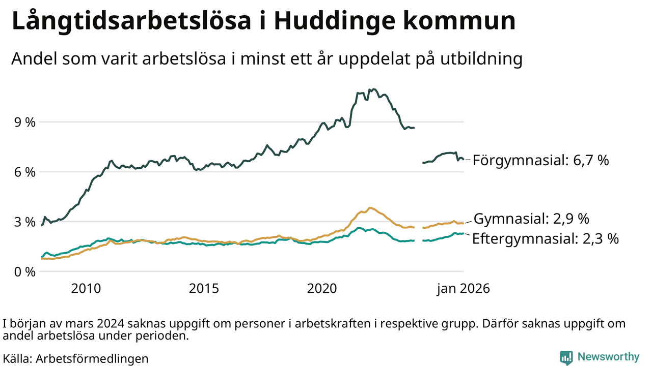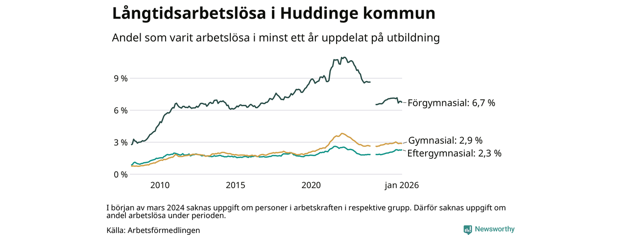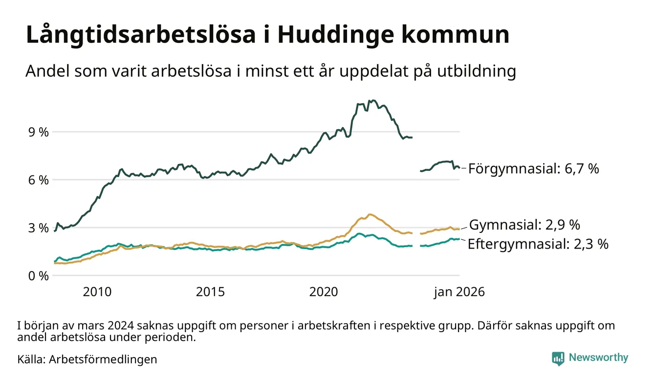 Långtidsarbetslöshet i Huddinge i januari 2026