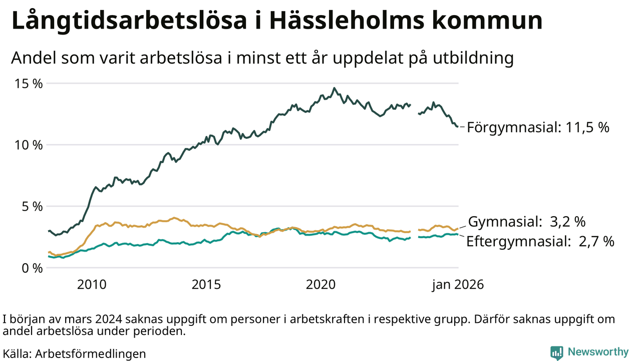 | Bland dem med eftergymnasial utbildning | 2,7 % | 2,5 % | 1,9 % |