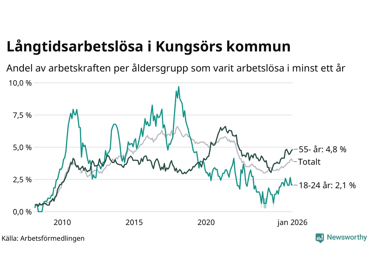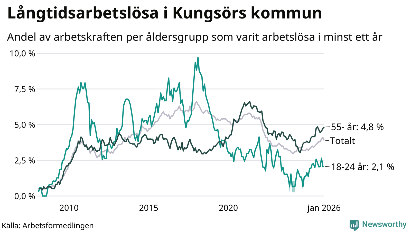 Graf: Andel arbetslösa uppdelat i åldersgrupper i Kungsör