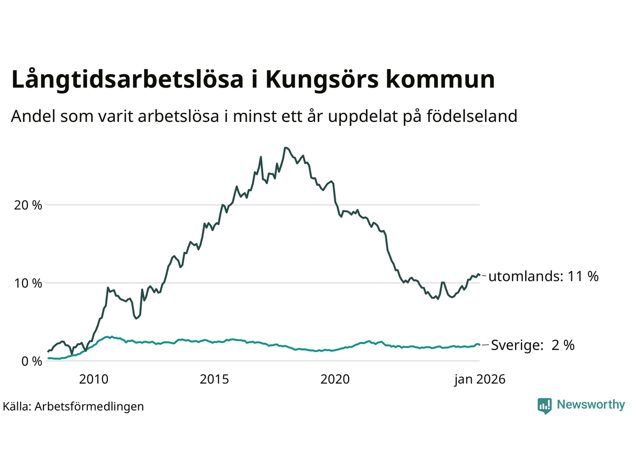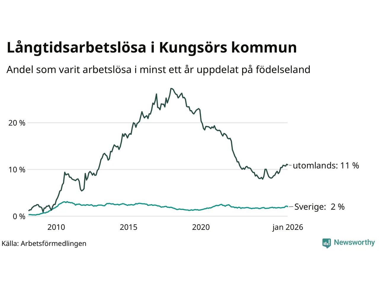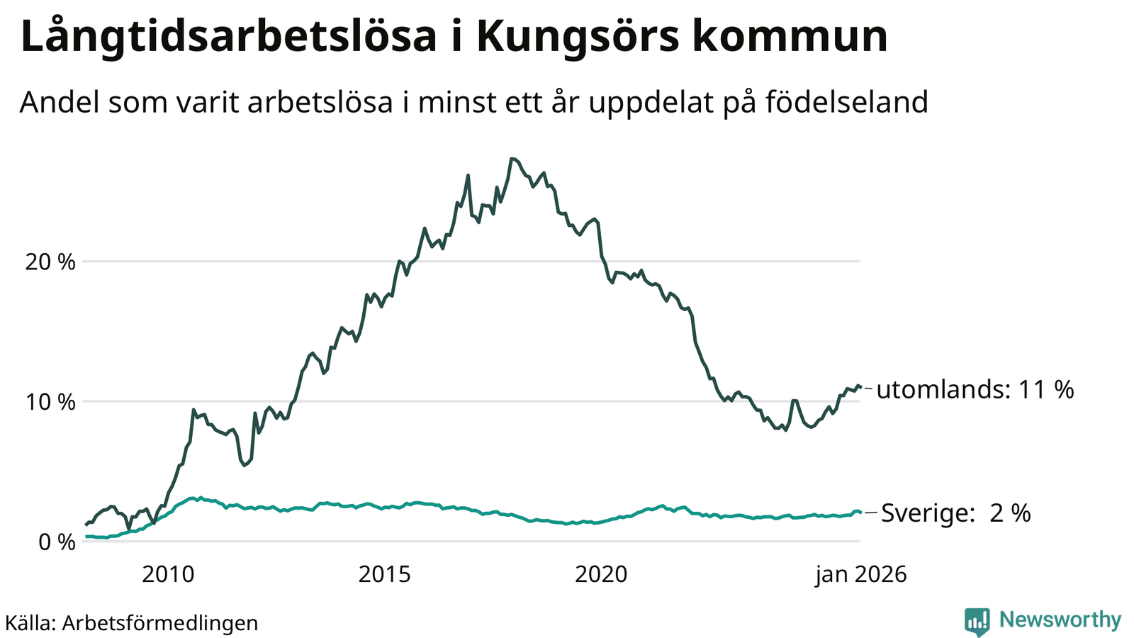 Graf: Andel arbetslösa uppdelat på födelseland i Kungsör