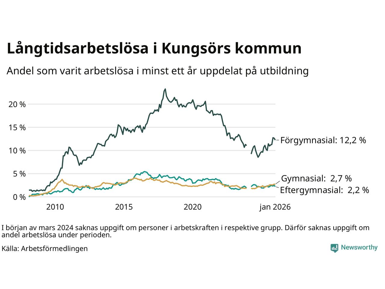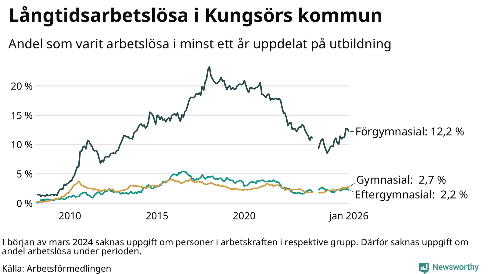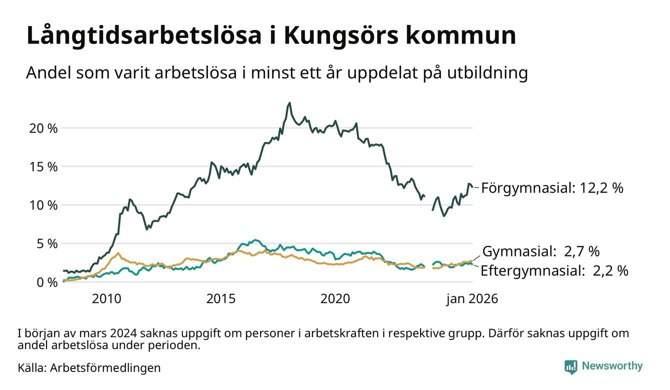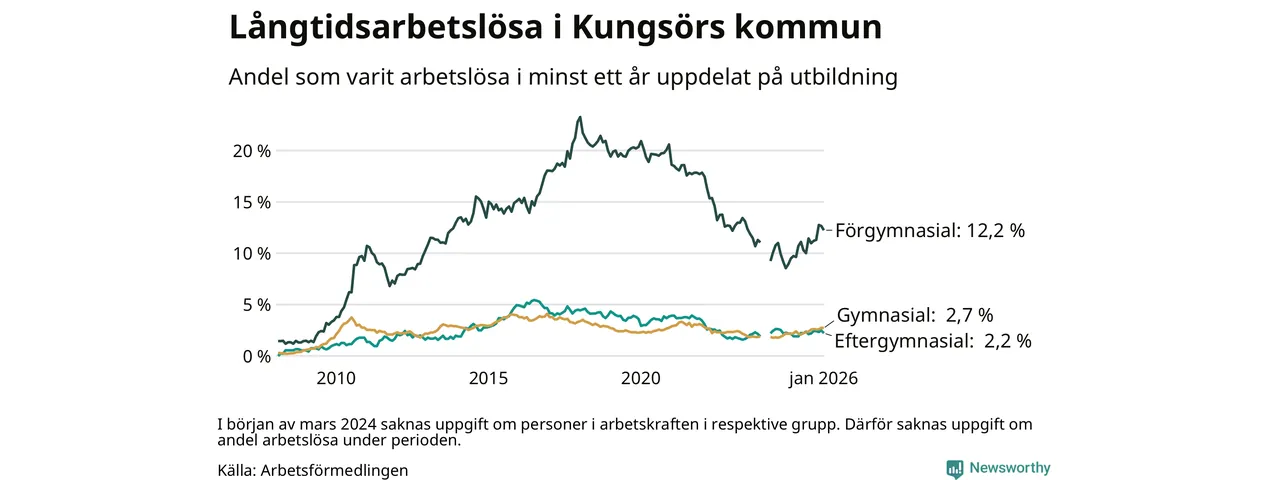Graf: Andel arbetslösa i Kungsör som varit utan arbete i minst 12 månader