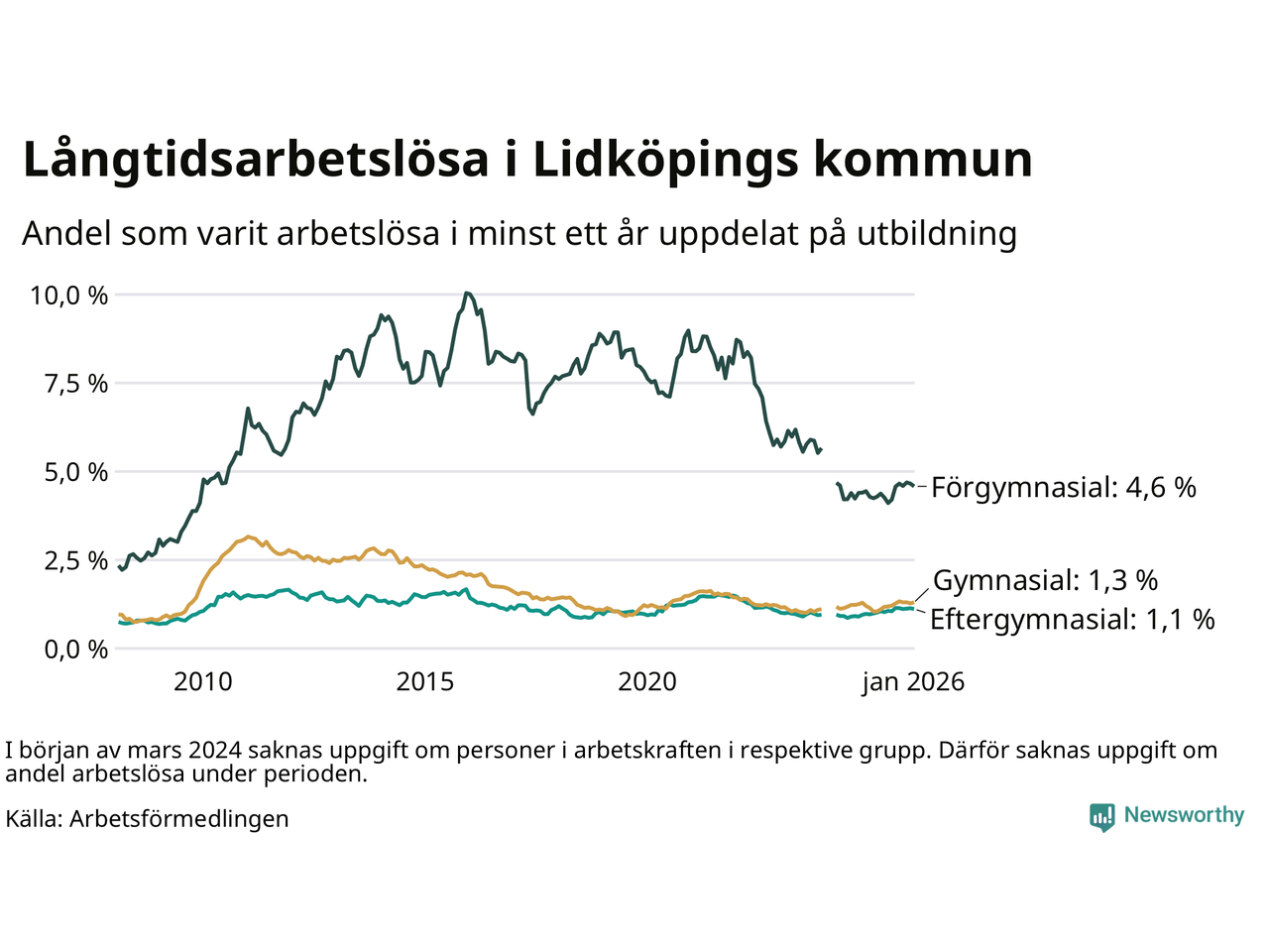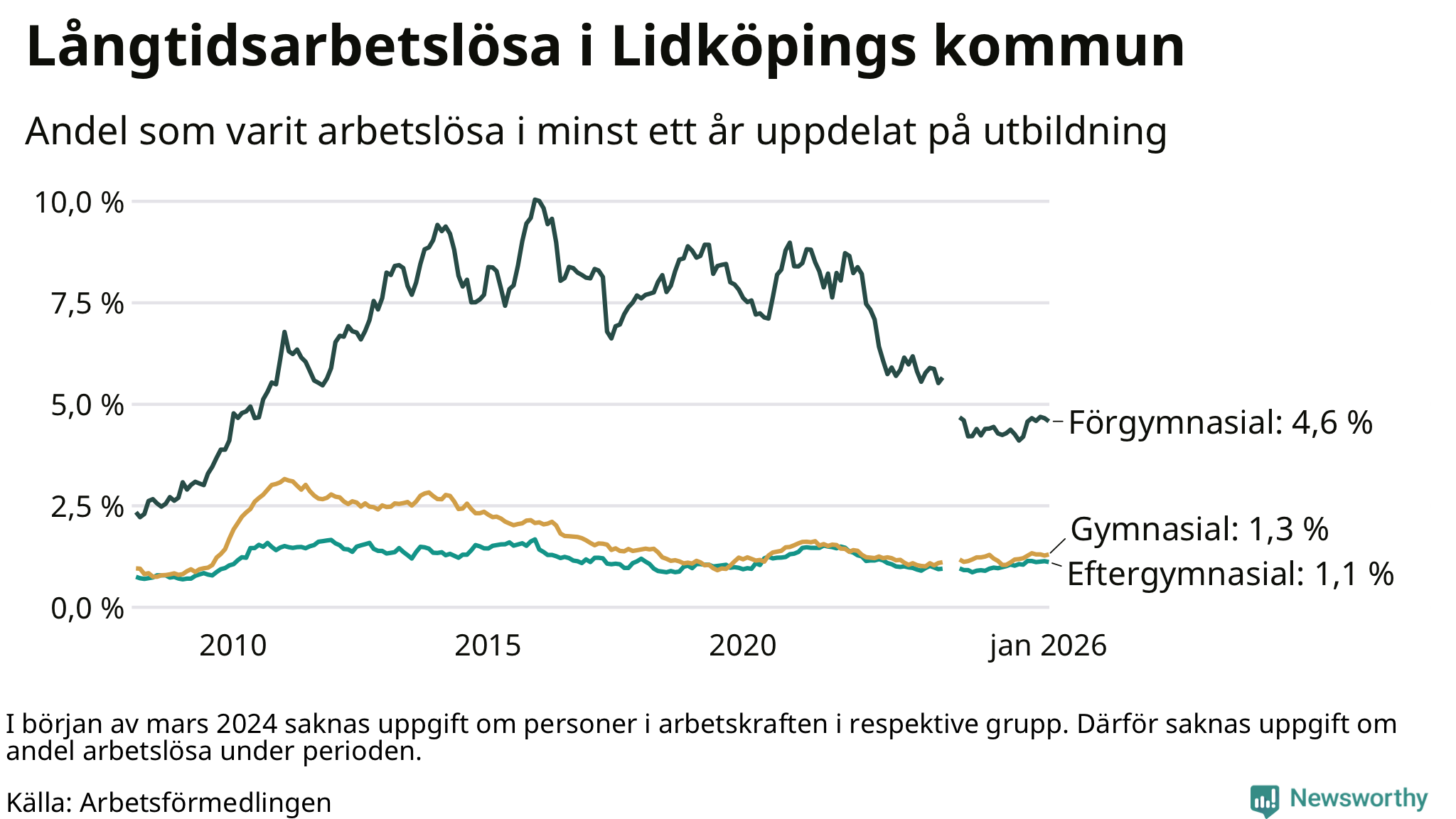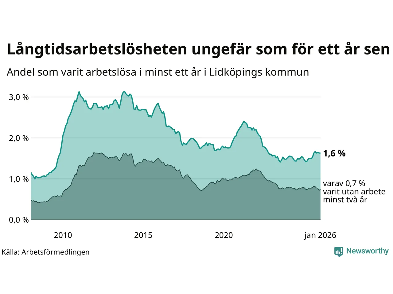 Andel arbetslösa i minst ett år1,6 %2,5 %2,9 %