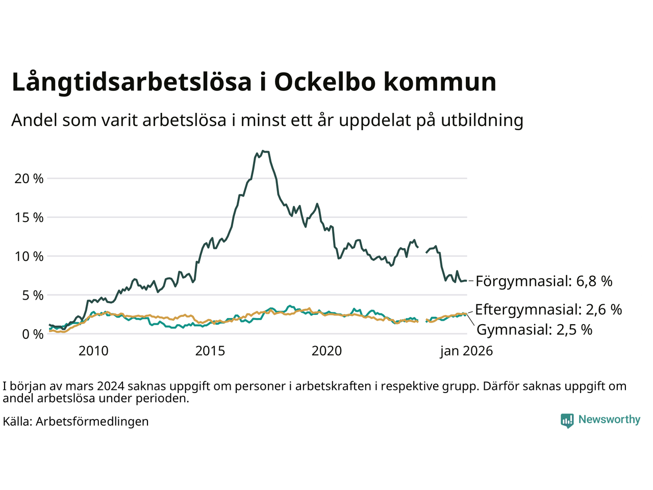 | Bland dem med eftergymnasial utbildning | 2,6 % | 2,2 % | 1,9 % |