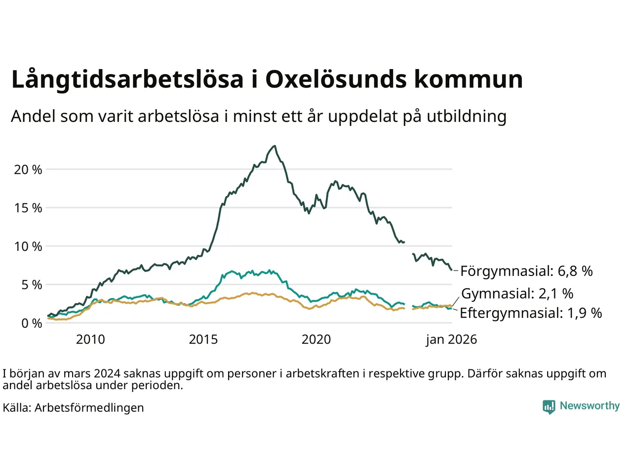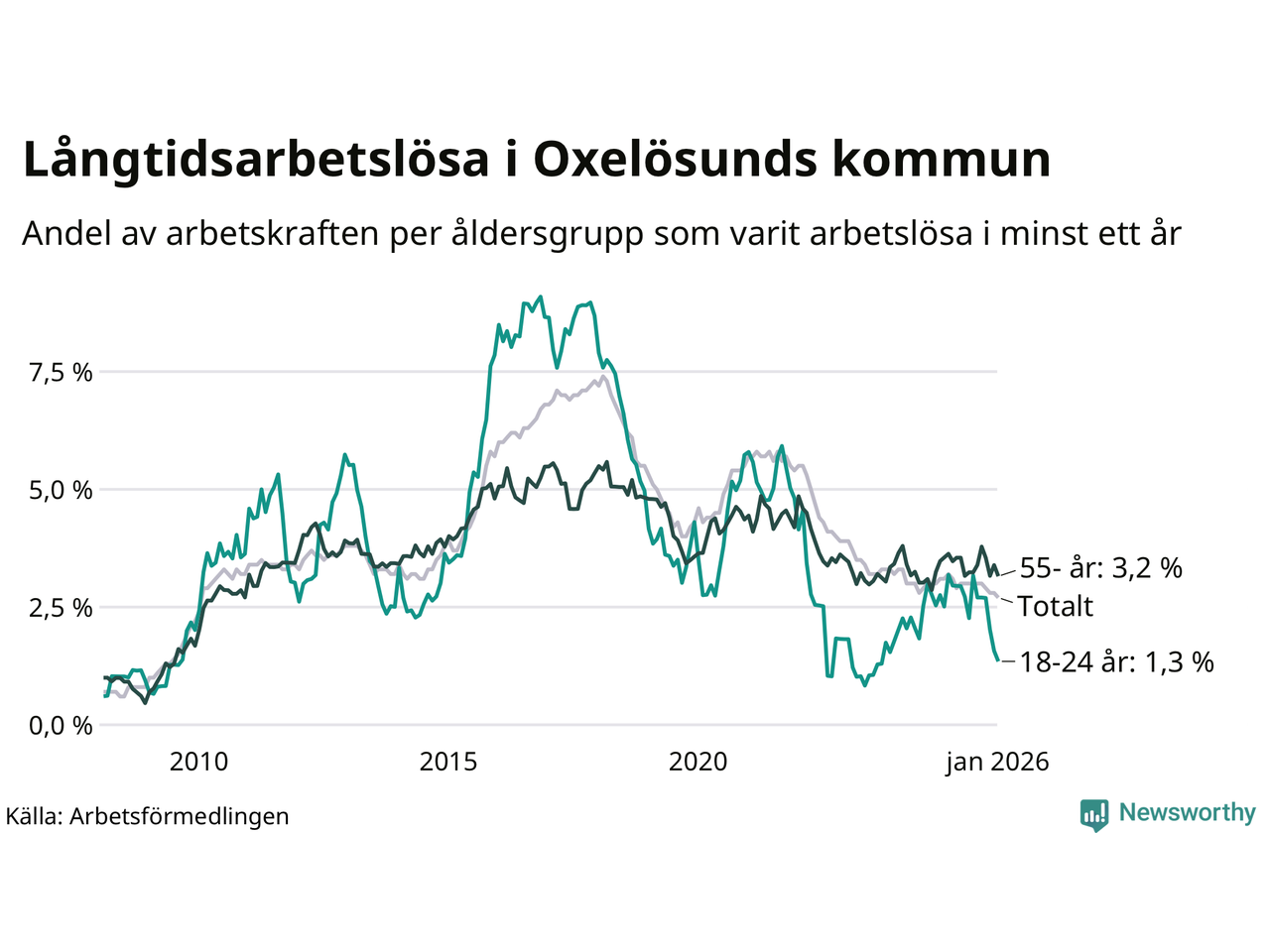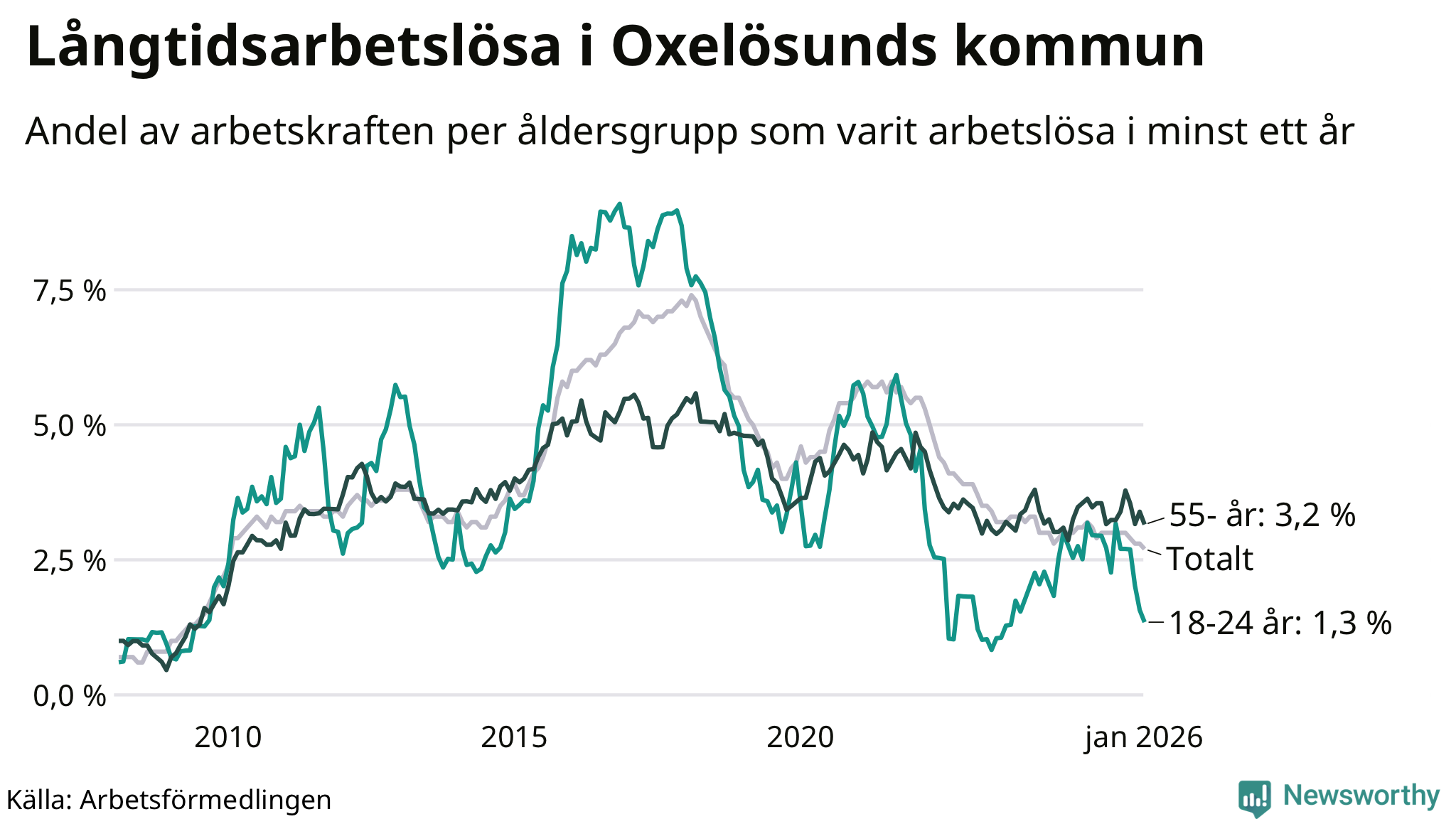 | Andel arbetslösa i minst ett år | 2,7 % | 3,9 % | 2,9 % |