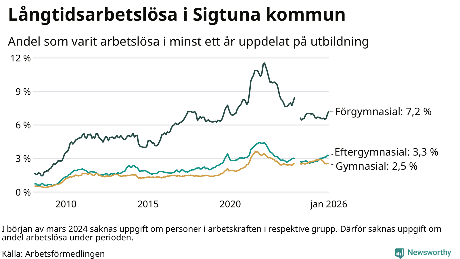 | Bland dem med eftergymnasial utbildning | 3,3 % | 2,2 % | 1,9 % |