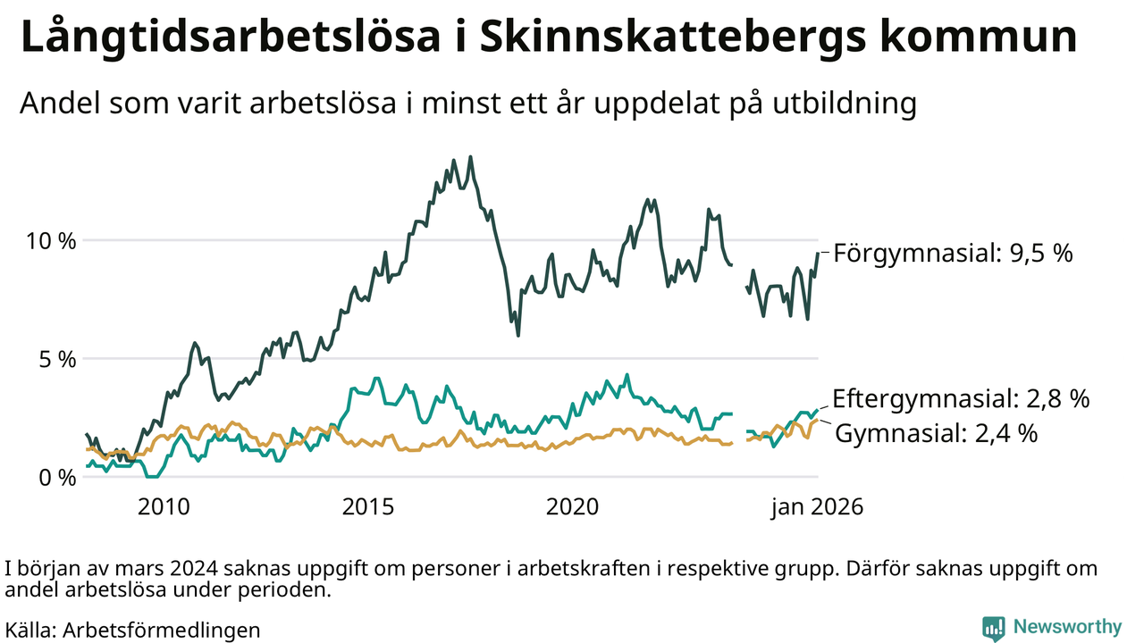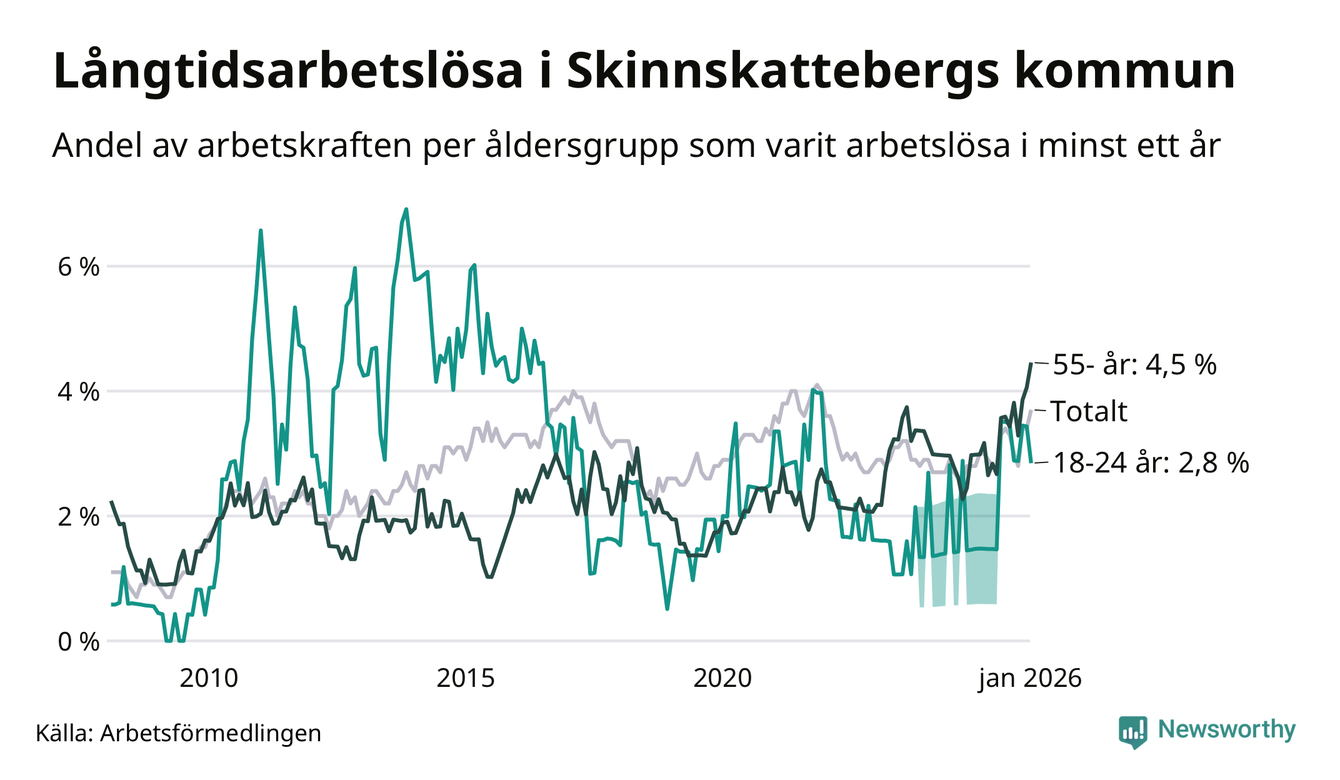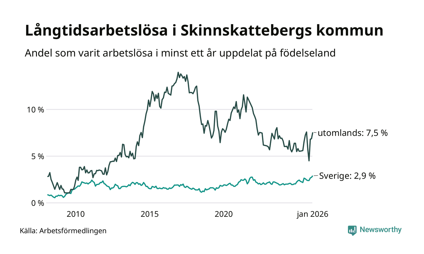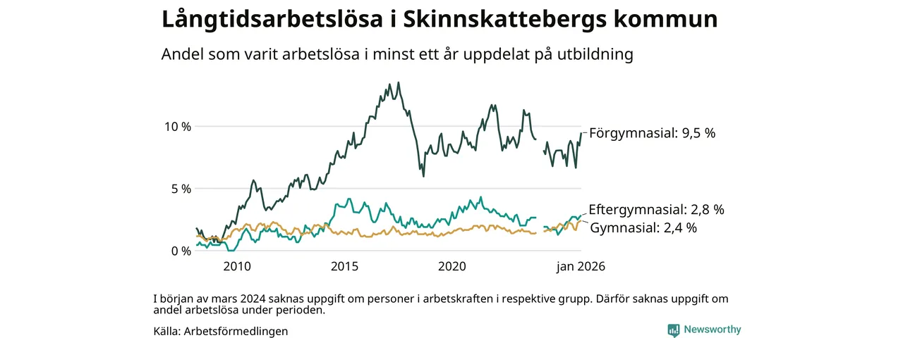 Inte sedan december 2021 har andelen långtidsarbetslösa varit så hög i Skinnskatteberg. Det visar Arbetsförmedlingens senaste månadsstatistik.