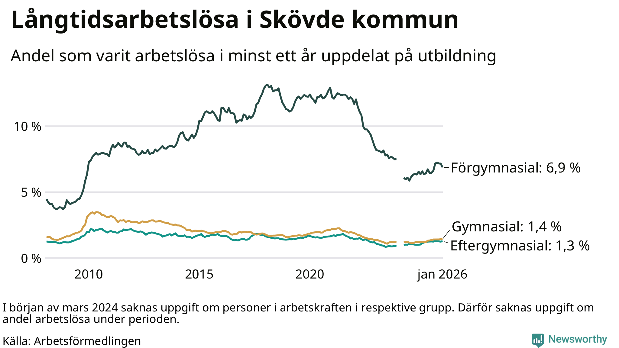 | Bland dem med eftergymnasial utbildning | 1,3 % | 1,8 % | 1,9 % |