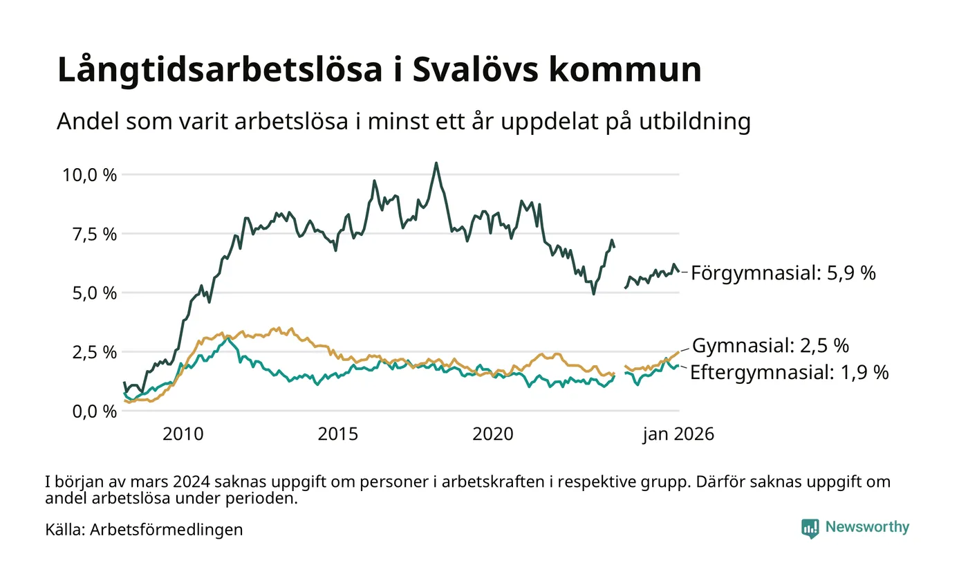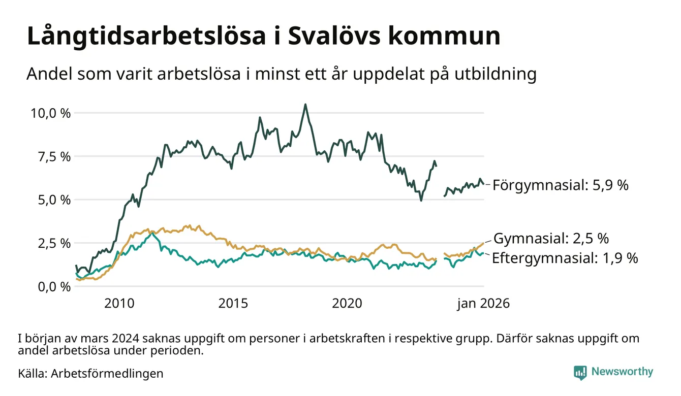 Inte sedan juli 2021 har andelen långtidsarbetslösa varit så hög i Svalöv. Det visar Arbetsförmedlingens senaste månadsstatistik.