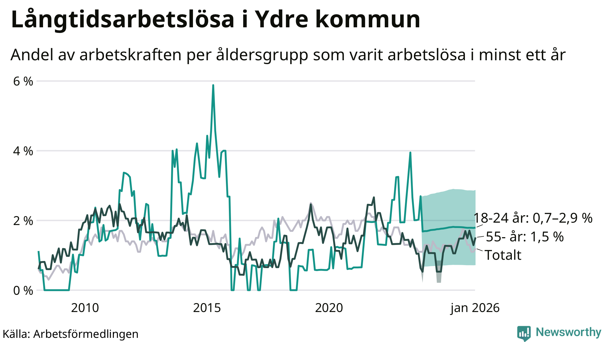 Långtidsarbetslöshet i Ydre i januari 2026
