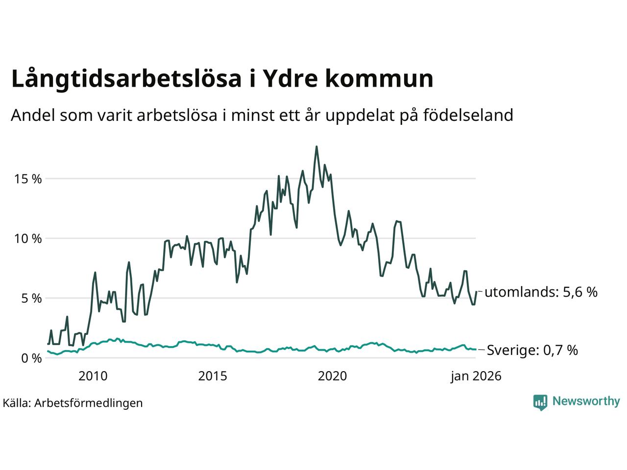 Graf: Andel arbetslösa uppdelat på födelseland i Ydre