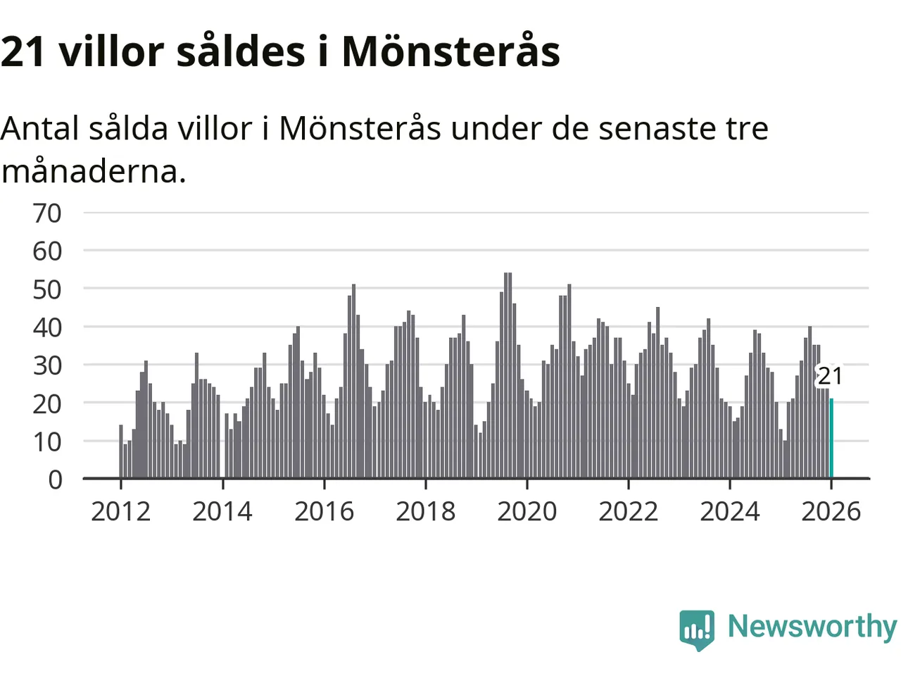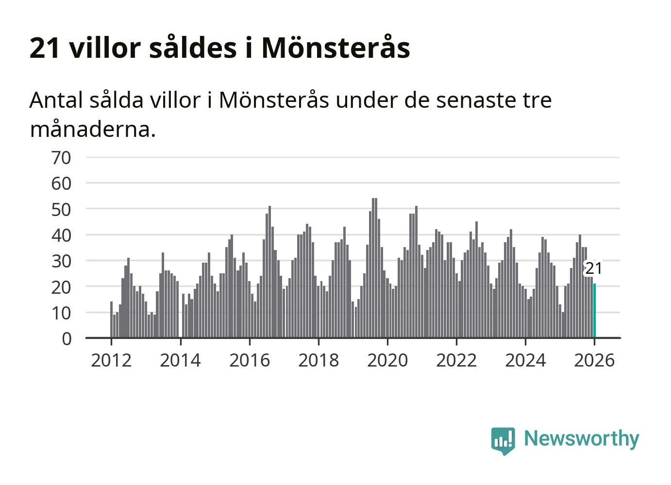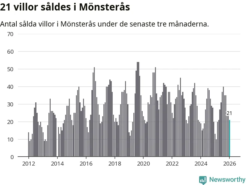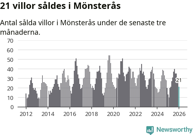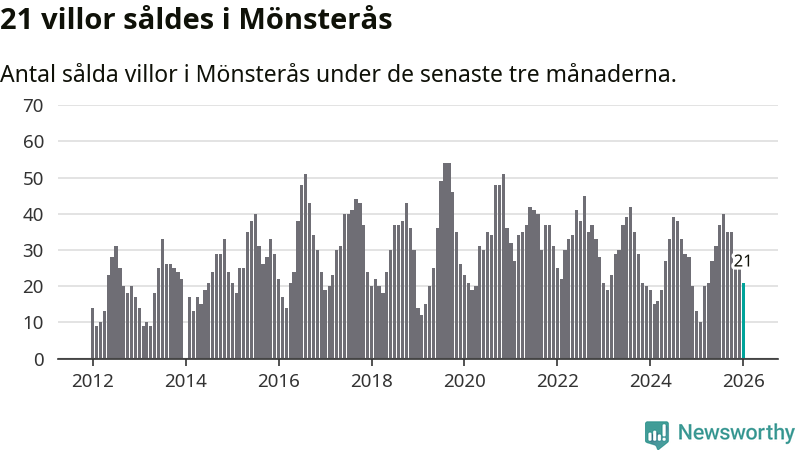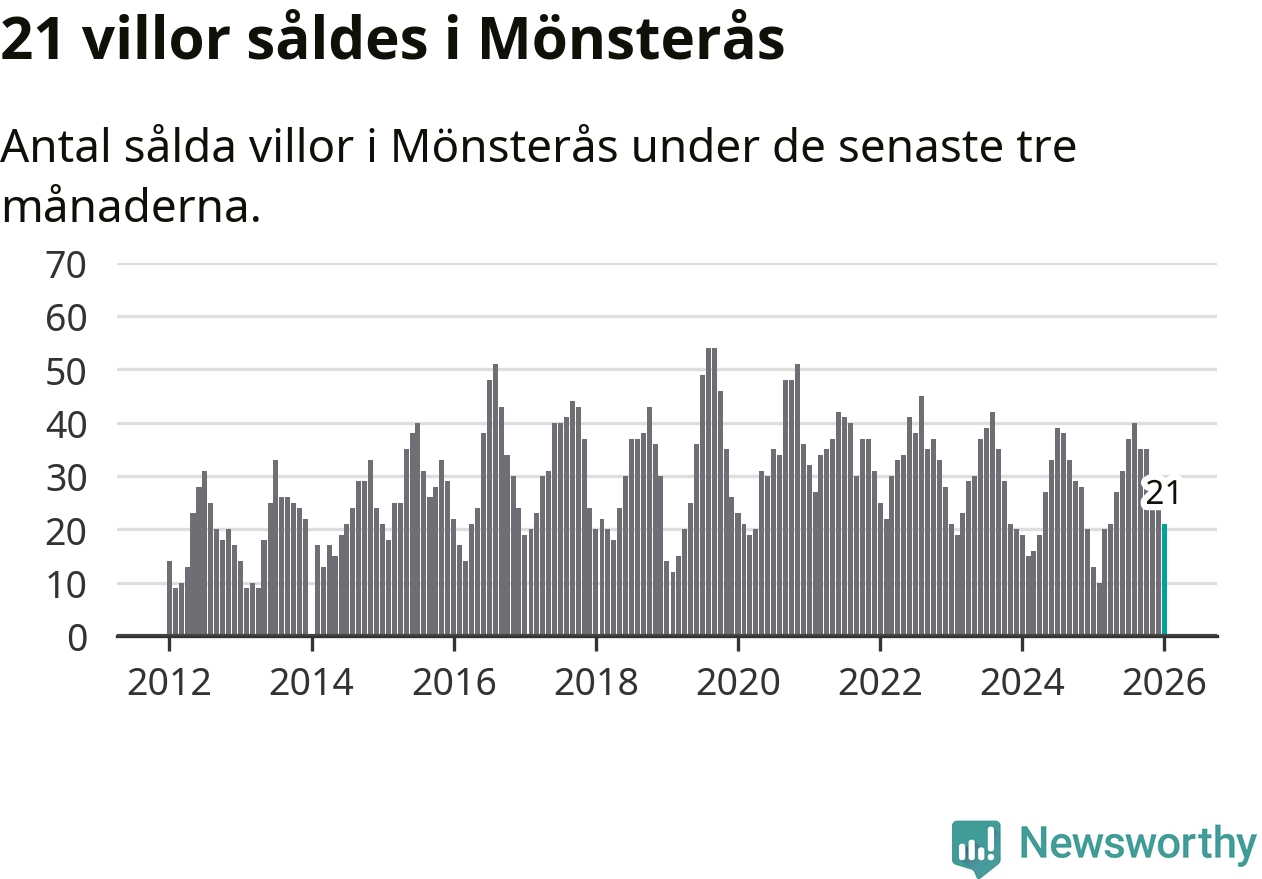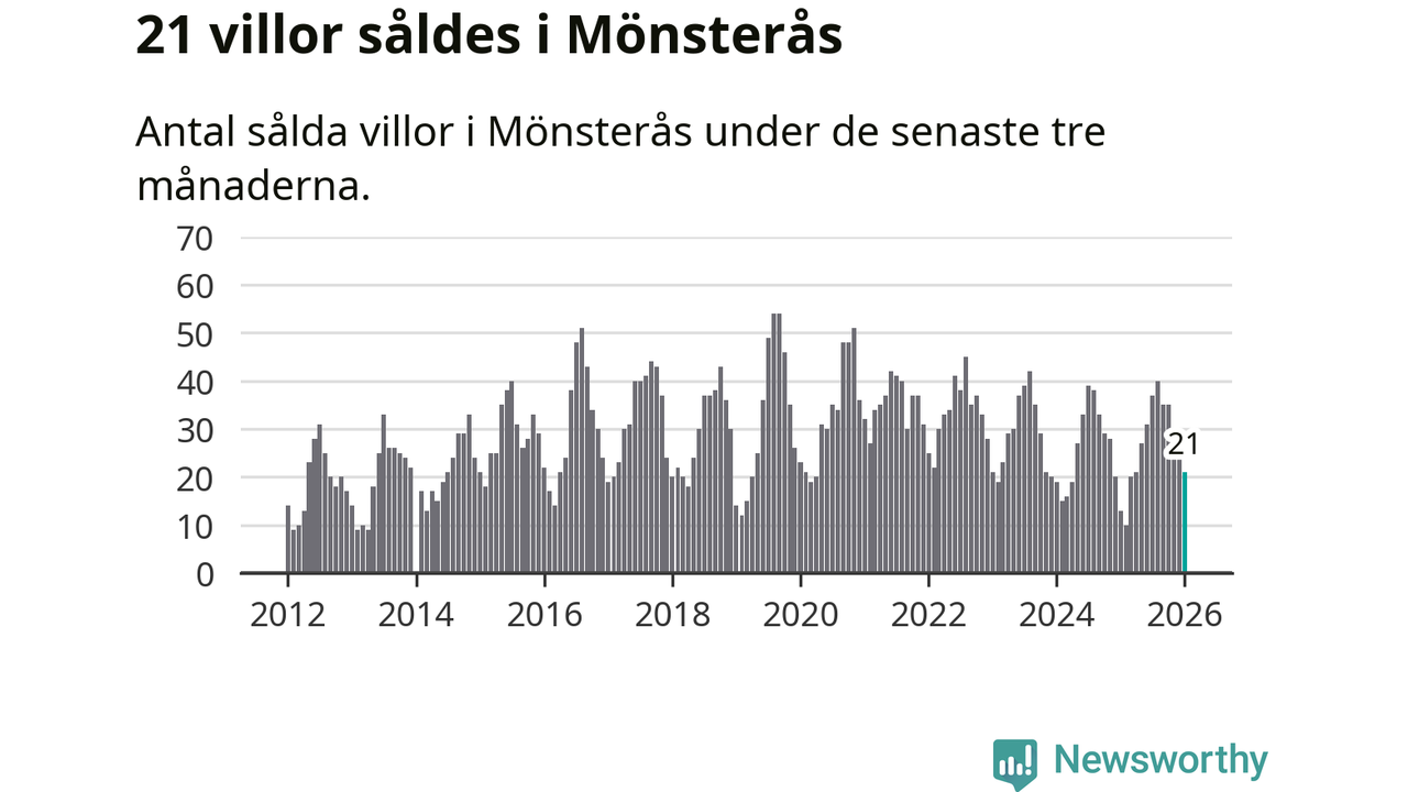 Mellan november och januari gjordes sammanlagt 21 affärer med villor i Mönsterås kommun. Det kan jämföras med 13 vid motsvarande tid i fjol.
