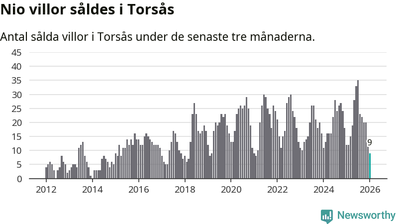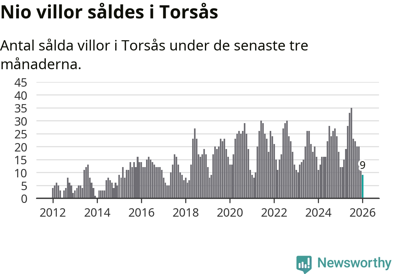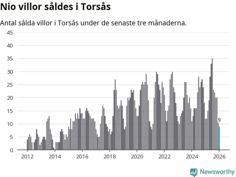 Mellan november och januari gjordes sammanlagt nio affärer med villor i Torsås kommun. Det kan jämföras med tolv vid motsvarande tid i fjol.