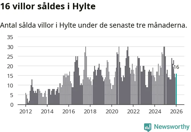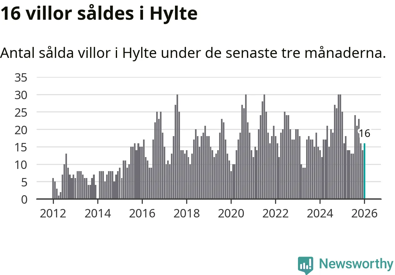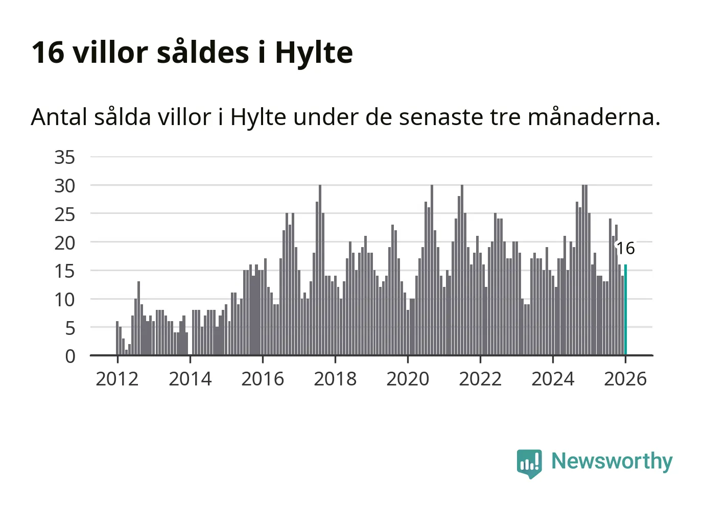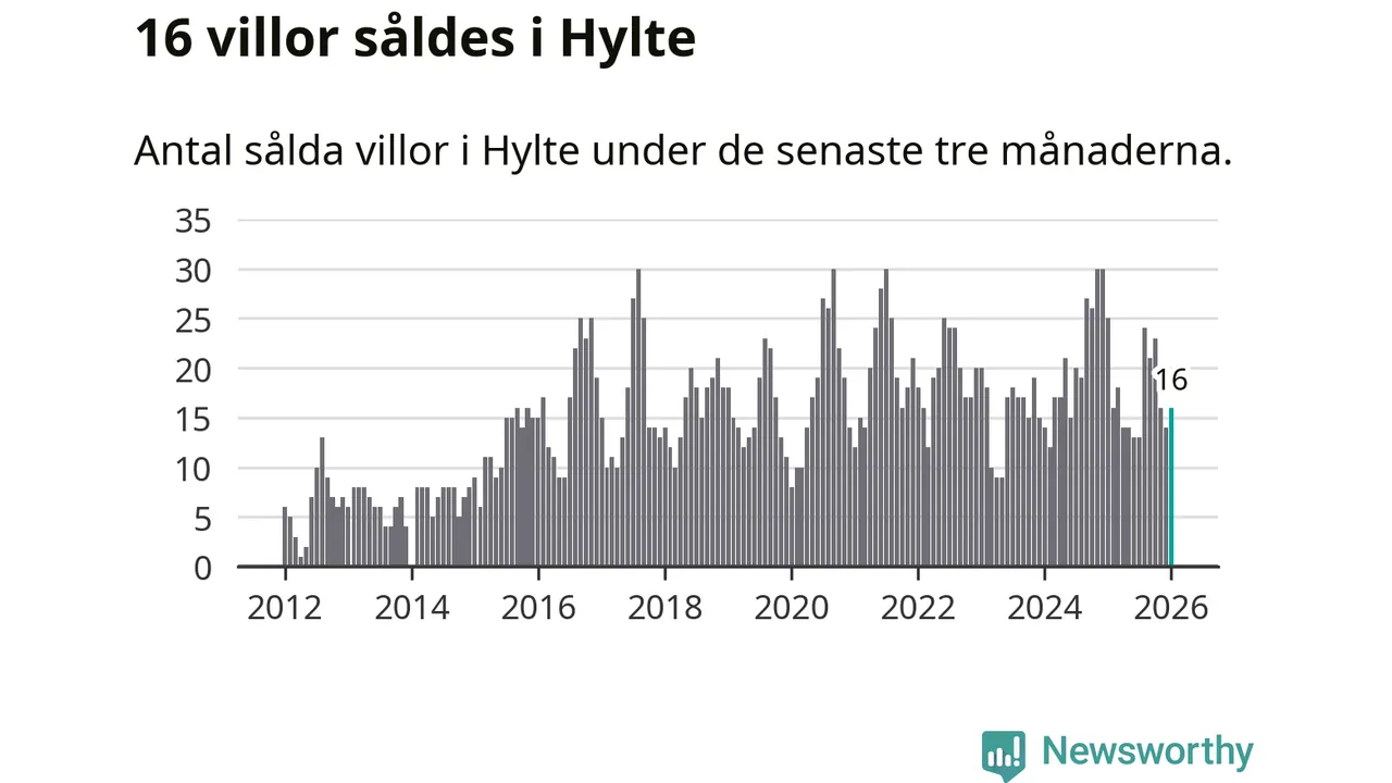 Mellan november och januari gjordes sammanlagt 16 affärer med villor i Hylte kommun. Det kan jämföras med 25 vid motsvarande tid i fjol.